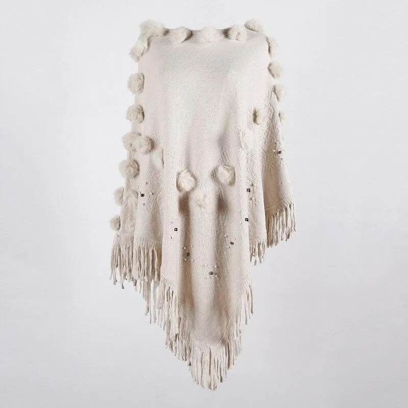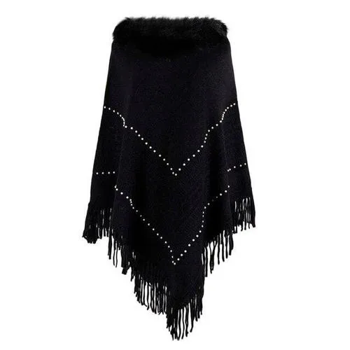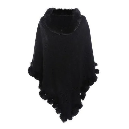 Poncho Femme Cachemire Col Fourrure