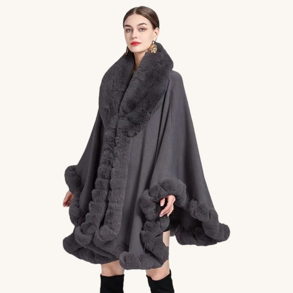 Cape Grise Fourrure Femme