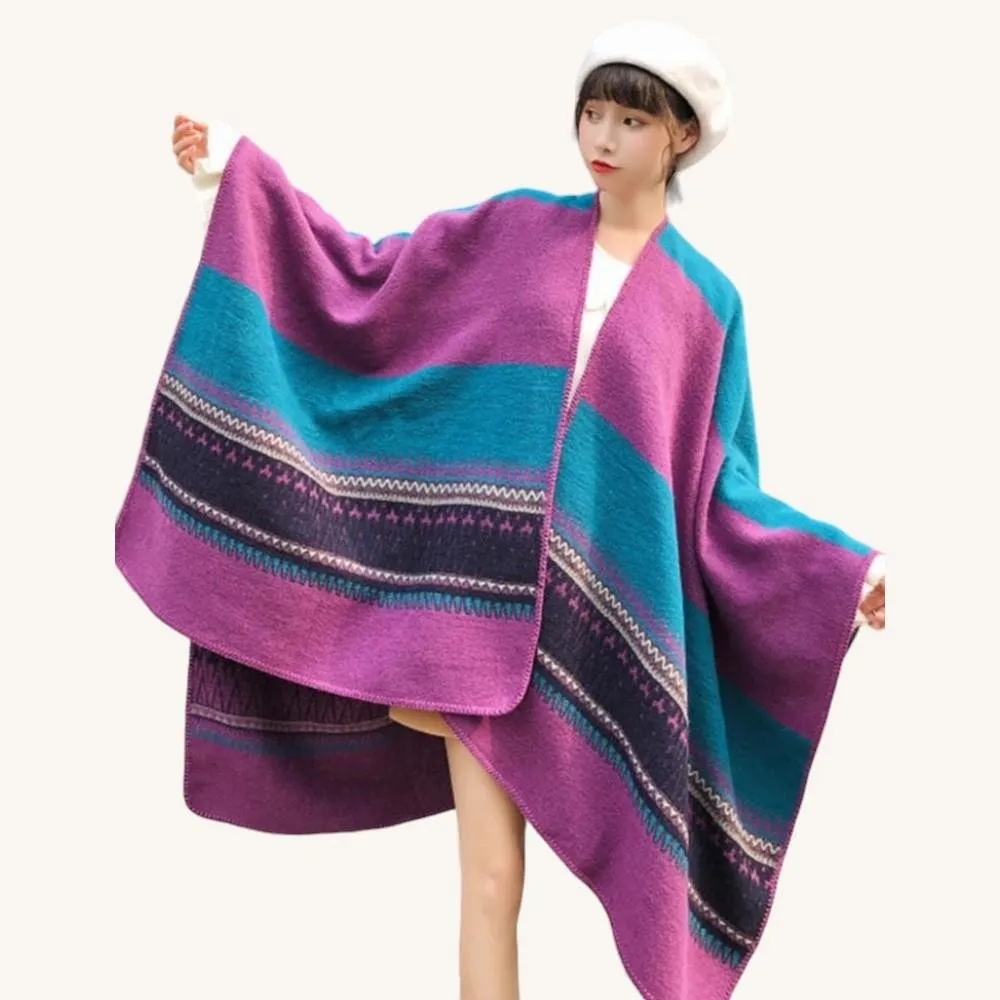 Chale Poncho Violet et Bleu