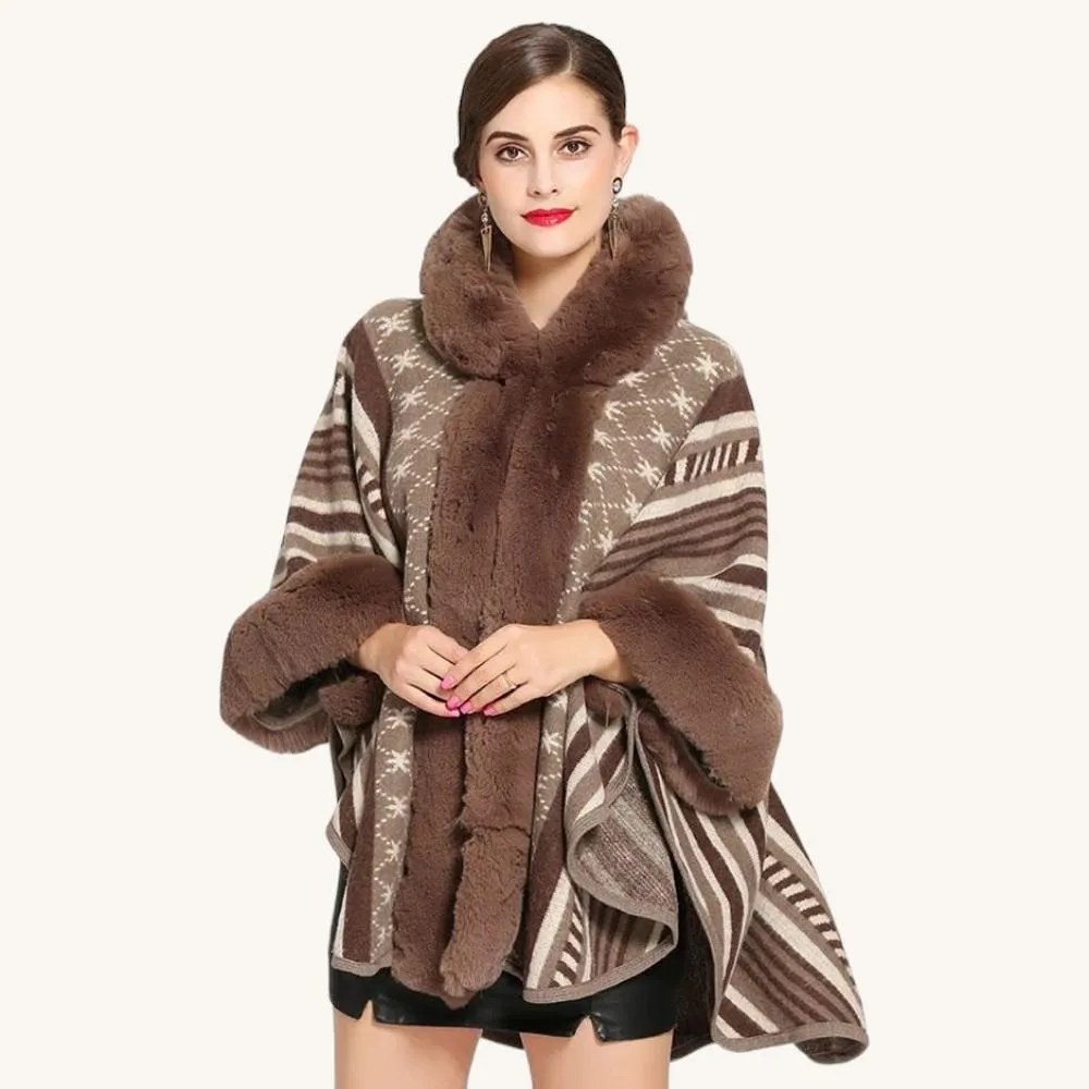 Manteau Poncho Fourrure Marron