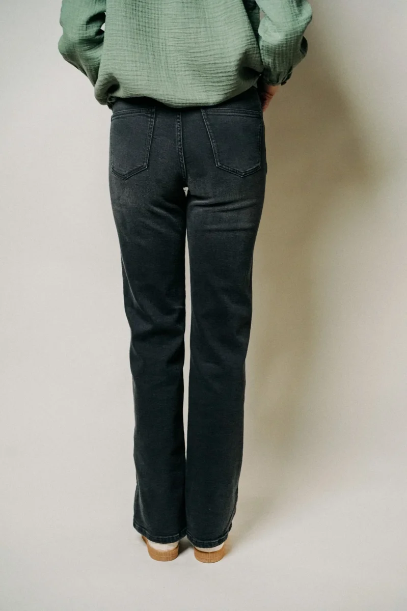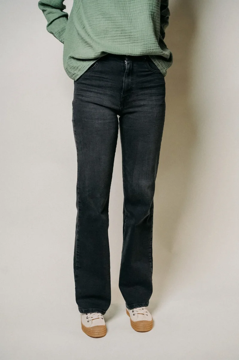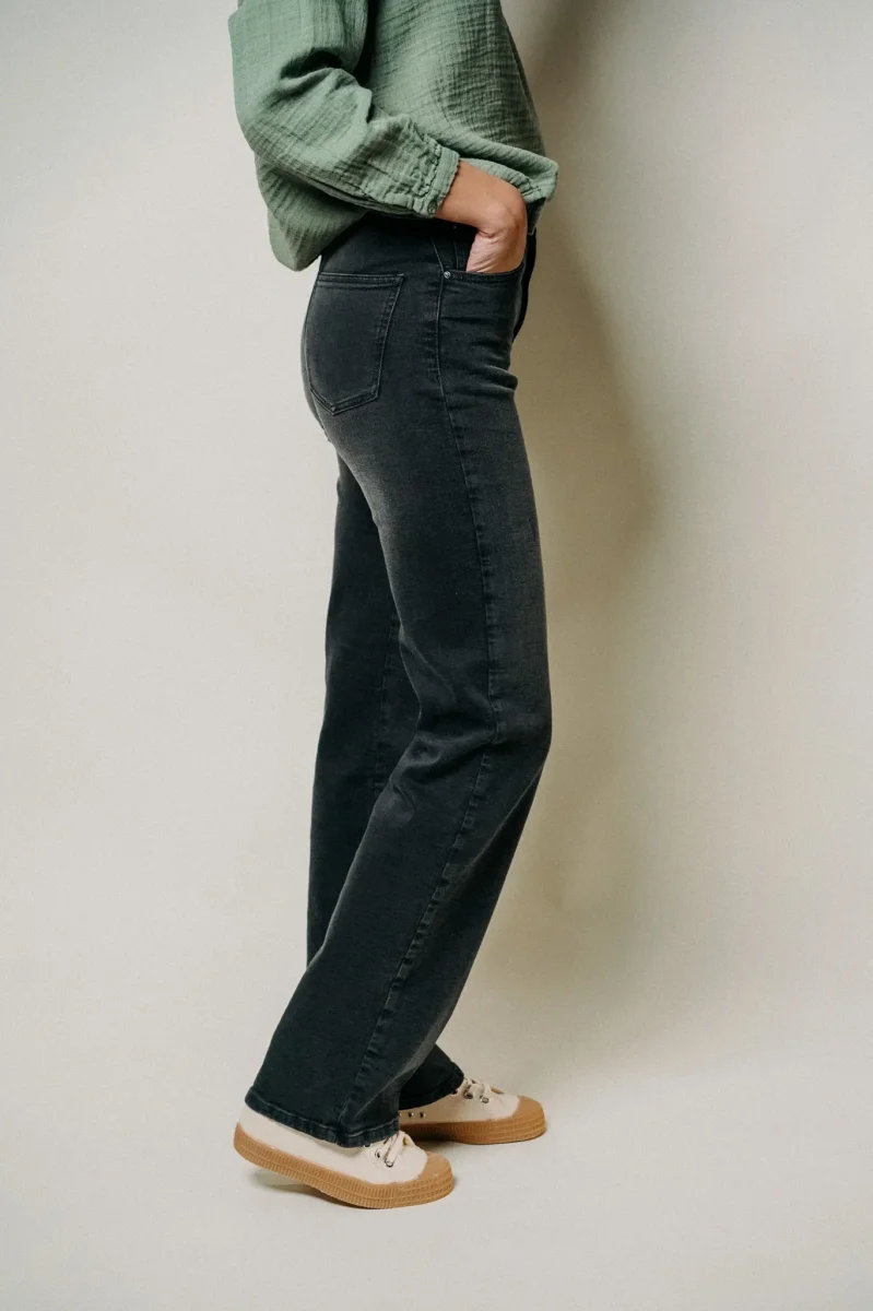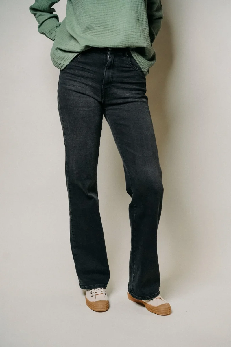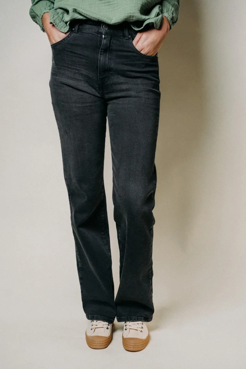 Le parfait jean Richie en 100% coton dans un bleu soutenu subtilement délavé. Jean 5 poches. Le jean Richie a une coupe droite légèrement large et long. Solveig mesure 1m78 et porte un 25.