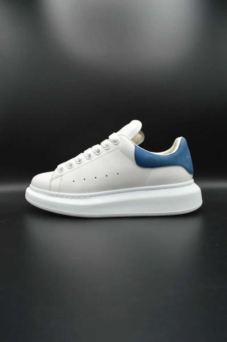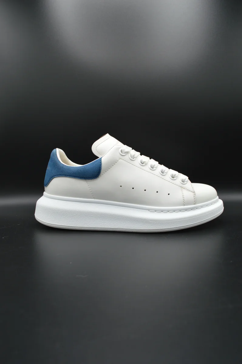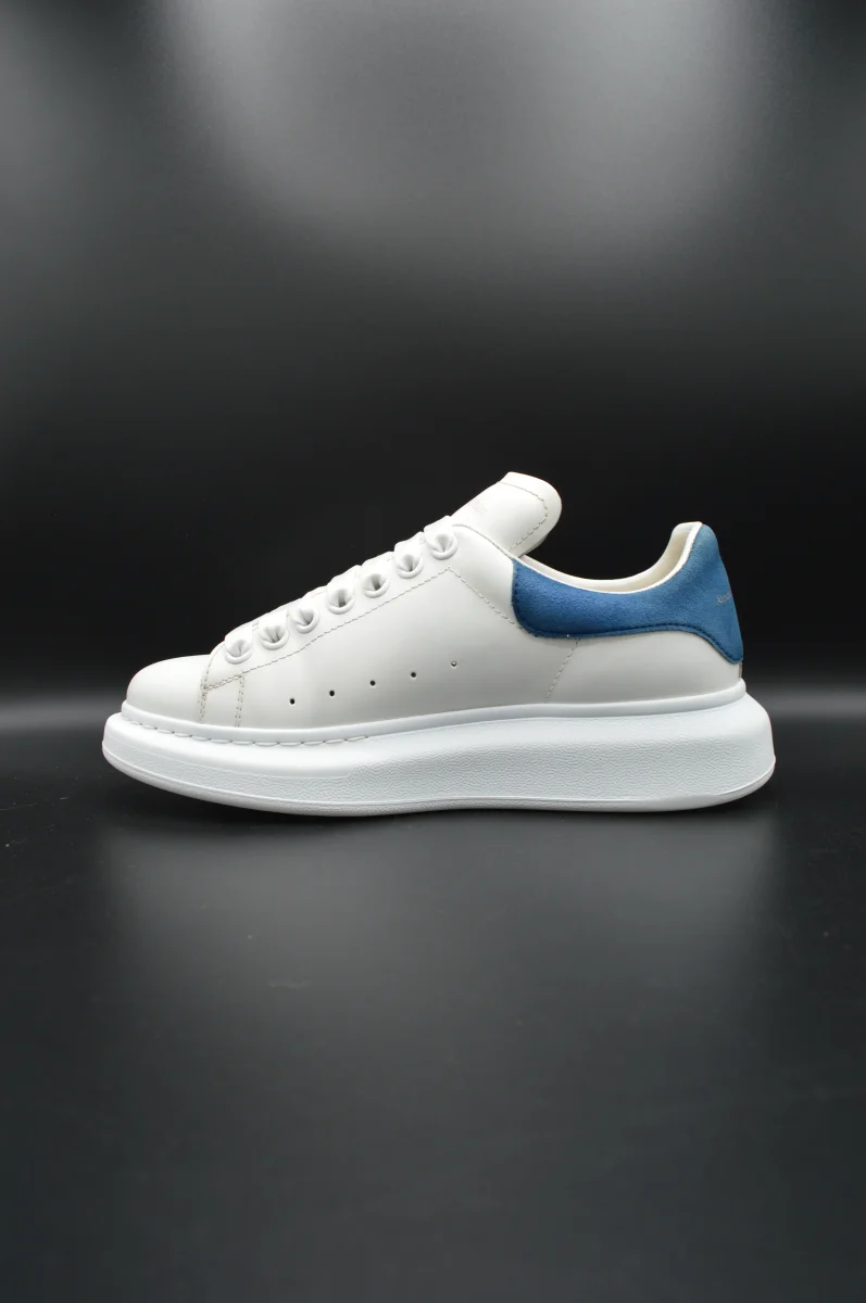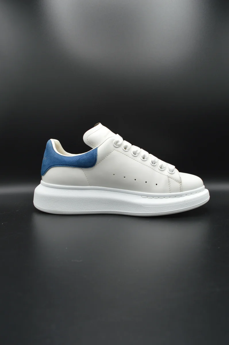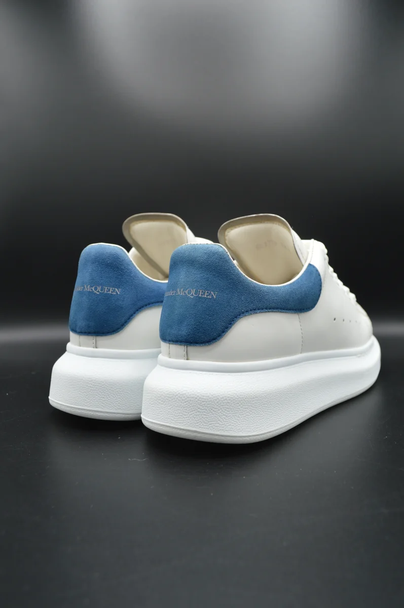 Détails de l’article : Marque : Alexander Mcqueen Modèle : Oversize Pointure : 38 Etat : Comme neuf Couleur : Blanc et bleu marine Matière : Cuir lisse de veau et daim Accessoires inclus : Aucun