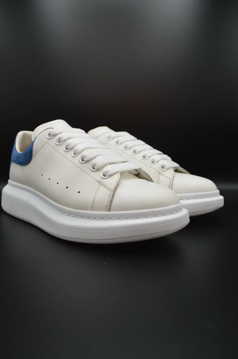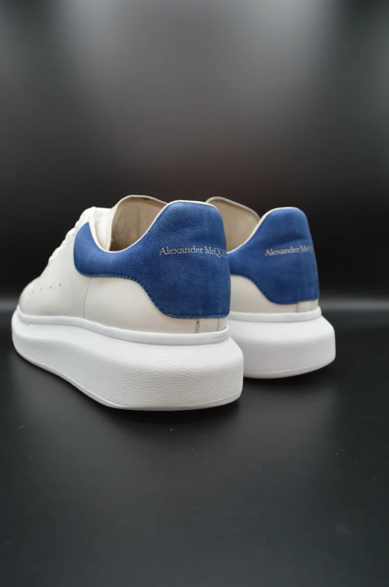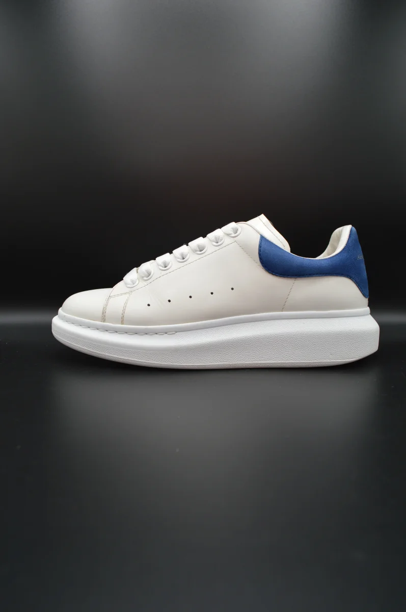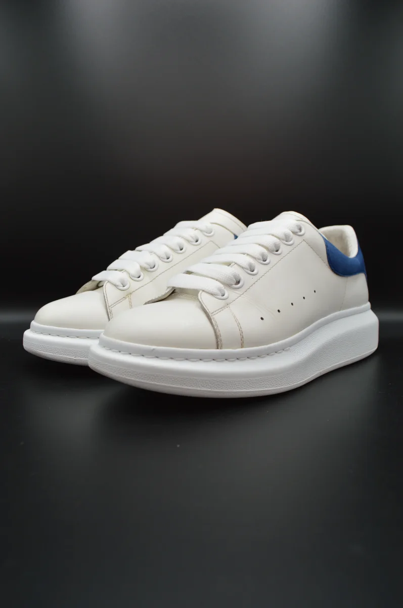 Détails de l’article : Marque : Alexander Mcqueen Modèle : Oversize Pointure : 40 Etat : Très bon état Couleur : Blanc et bleu marine Matière : Cuir et daim Accessoires inclus : Dustbag