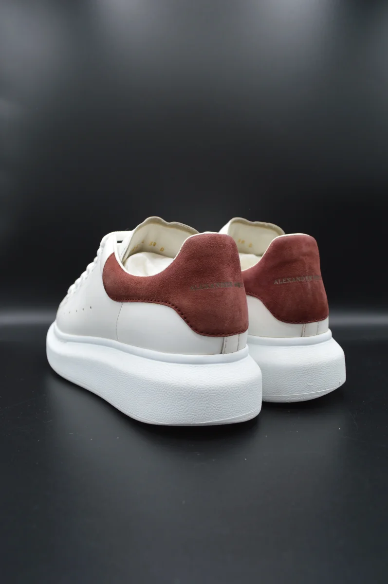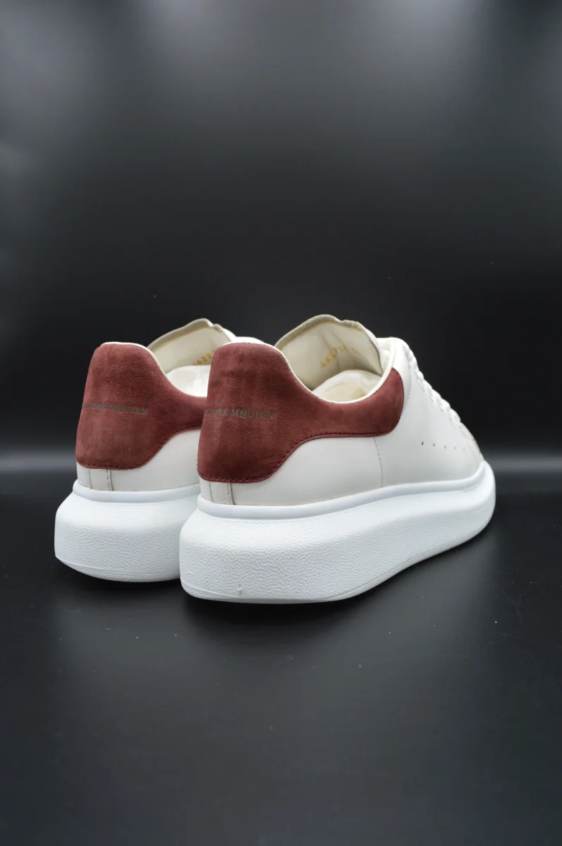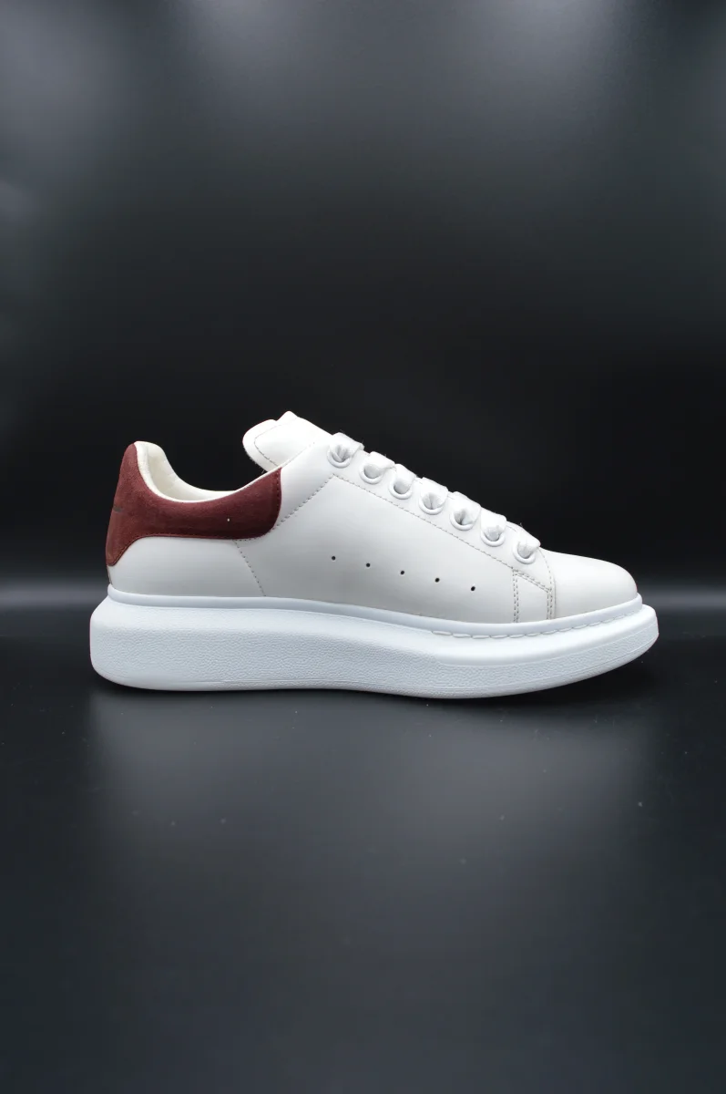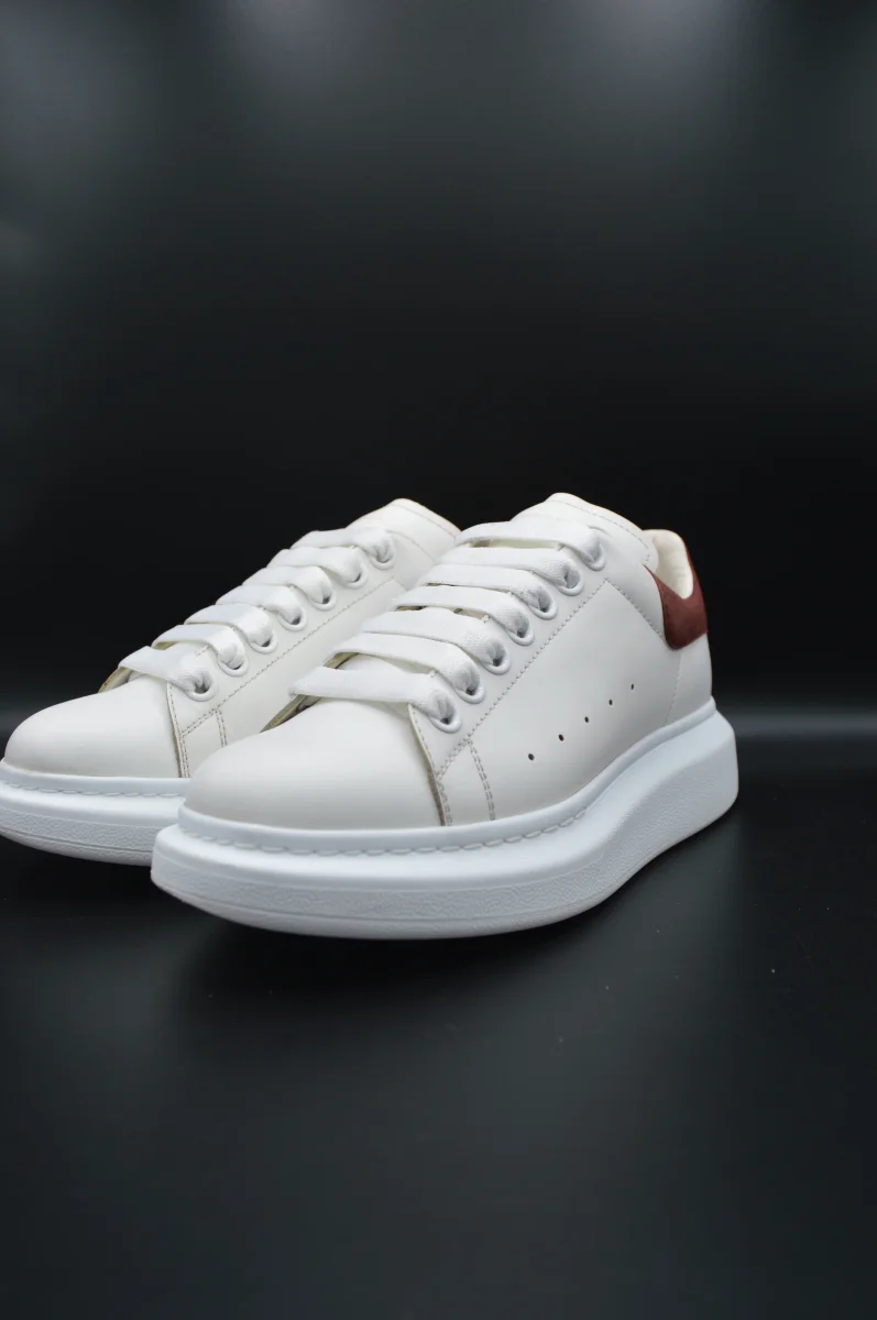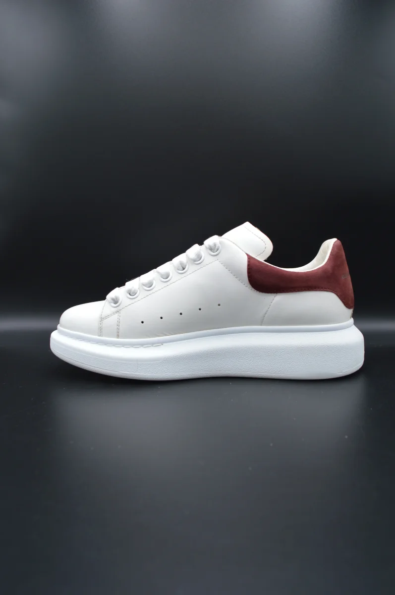 Détails de l’article : Marque : Alexander Mcqueen Modèle : Oversize Pointure : 38 Etat : Très bon état Couleur : Blanc et bordeaux Matière : Cuir lisse de veau et daim Accessoires inclus : Boite, lacets de rechange et notice
