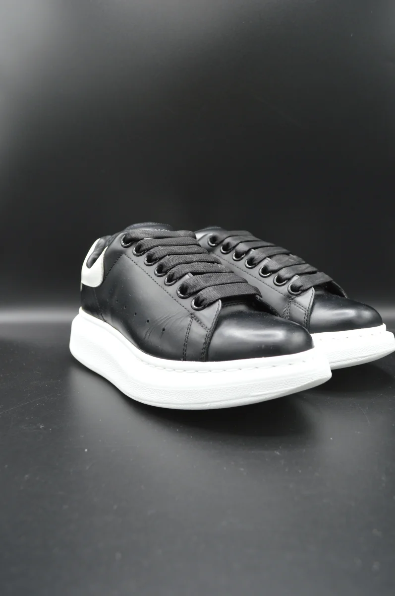 Détails de l’article : Marque : Alexander Mcqueen Modèle : Oversize Pointure : 37 Etat : Bon état Couleur : Blanc et noir Matière : Cuir lisse de veau Accessoires inclus : Aucun