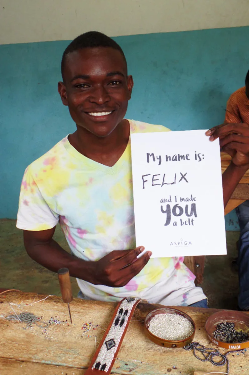 Chaque ceinture est soigneusement fabriquée par nos artisans et nécessite une journée entière de perlage. Le cuir véritable provient d’une tannerie de Nairobi, il est teint et séché au soleil, c’est pourquoi il n’y a pas deux ceintures identiques.