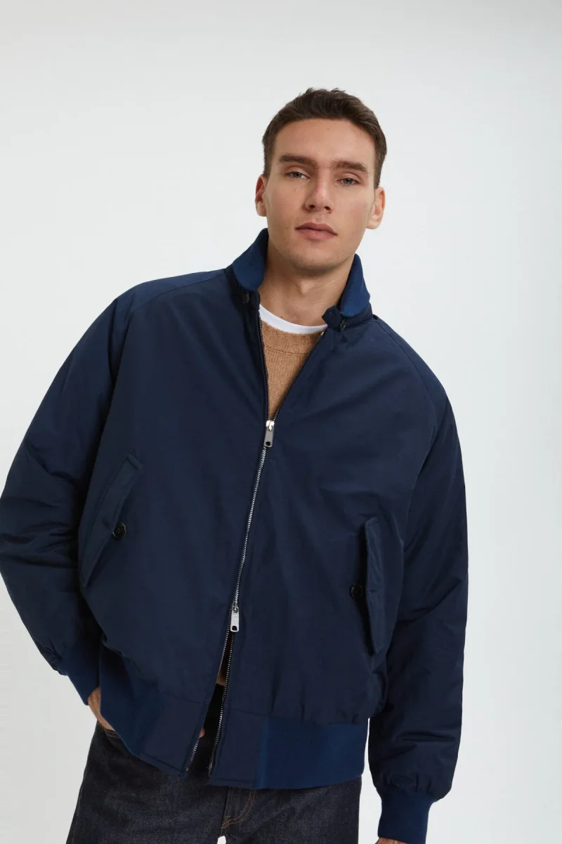 Le G9 Clicker de Baracuta est le frère du G9 Harrington et est une interprétation contemporaine d’un style intemporel. Avec des caractéristiques telles qu’un empiècement parapluie au dos, un col châle côtelé et des manches raglan, c’est un mélange d’élégance et de praticité.