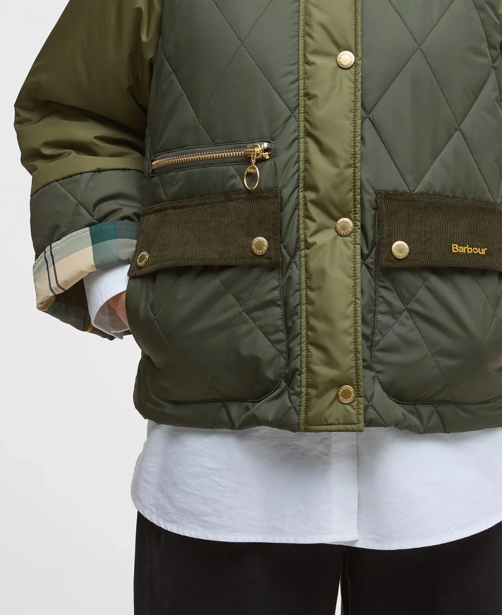 Cette saison, Barbour met en lumière son matelassage en losange distinctif – voir ici sur la veste matelassée Barbour Martha.