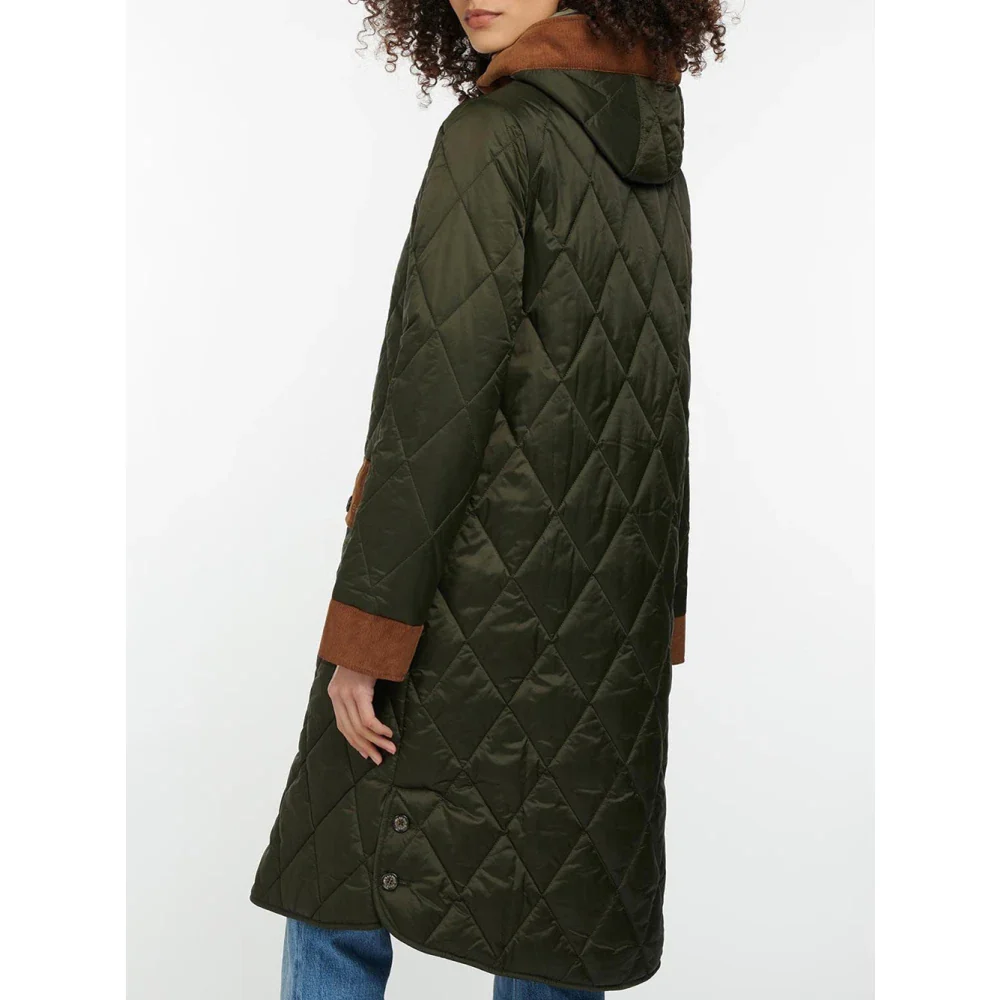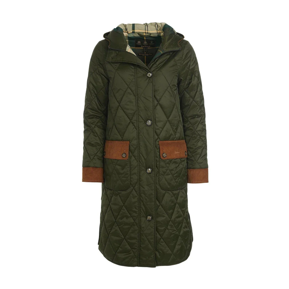 Le manteau Mickley est également garni de cordon à l’extérieur tandis que l’intérieur est recouvert d’une doublure tartan pour une sensation Barbour traditionnelle. Le Mickley est doté d’une fente incurvée boutonnée sur l’ourlet latéral.