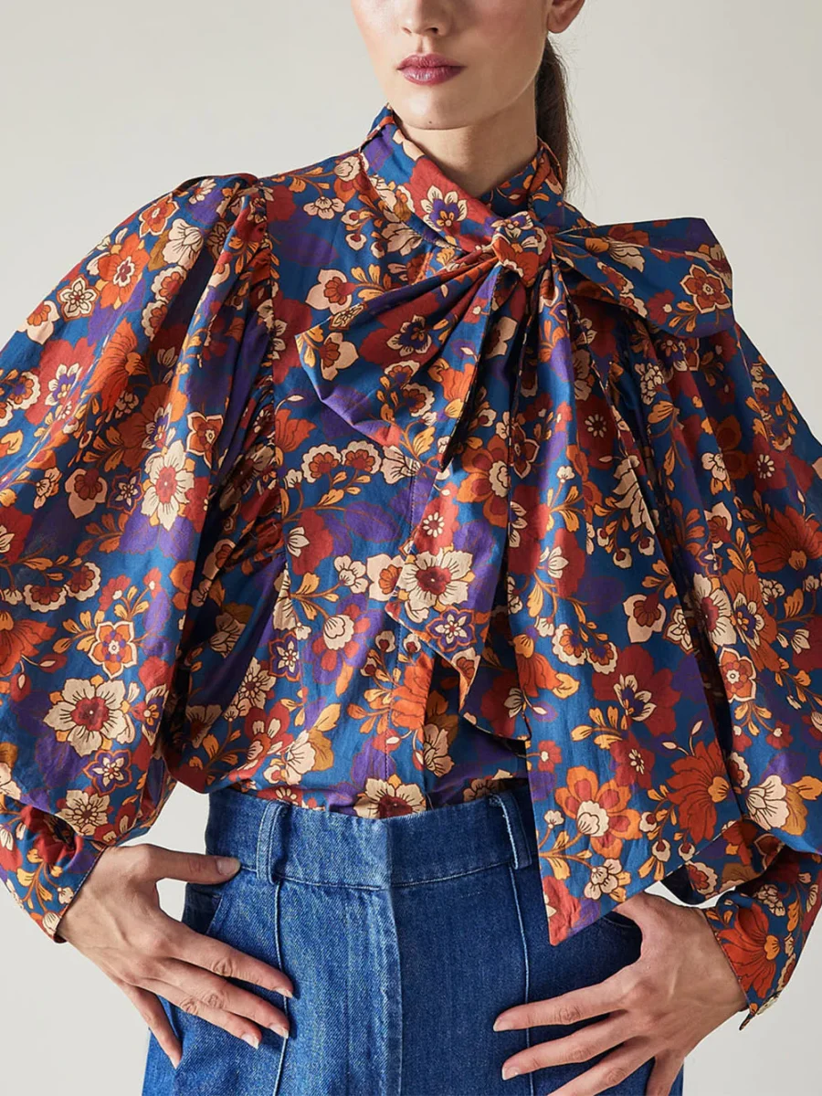 Cette blouse Céleste imprimée Pin Up Bloom signée The Label Edition est confectionnée en toile de coton. – Col montant et boutonné – Manches longues bouffantes– Boutons métalliques– Resserré aux manches– Détails volantés