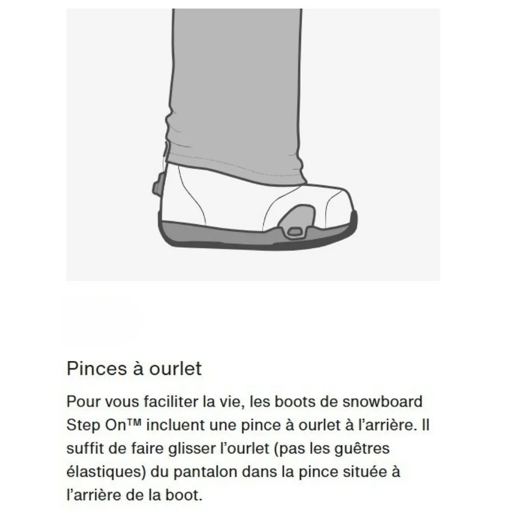 • Simplicité Step On® : Enclenchement instantané avec fixations Burton Step On®, sans sangles.