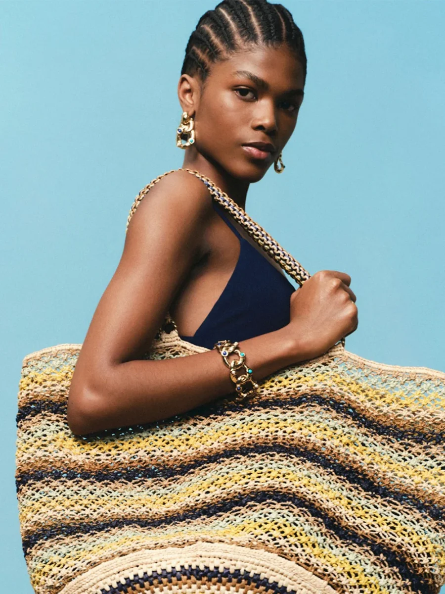Cabas Bambou Abysse signé Gas Bijoux confectionné à la main en raphia dans les tons bleu, vert et jaune. Notre sac Cabas Bambou. Un délicat tissage en macramé, sublimant la matière à travers un jeu raffiné de noeuds noués selon un savoir-faire artisanal. – Fabriquée dans notre atelier à Madagascar (favorisant le travail des femmes)– […]
