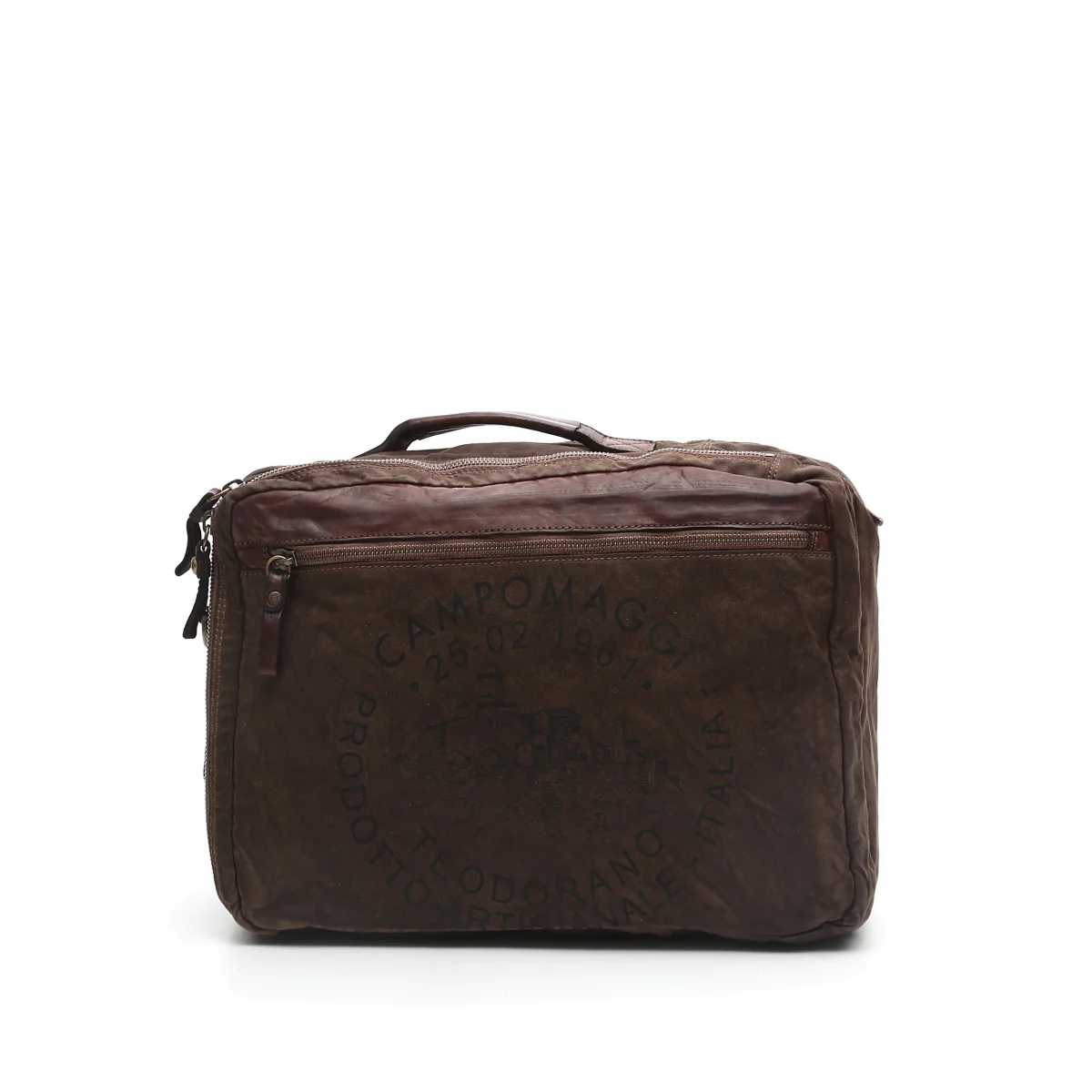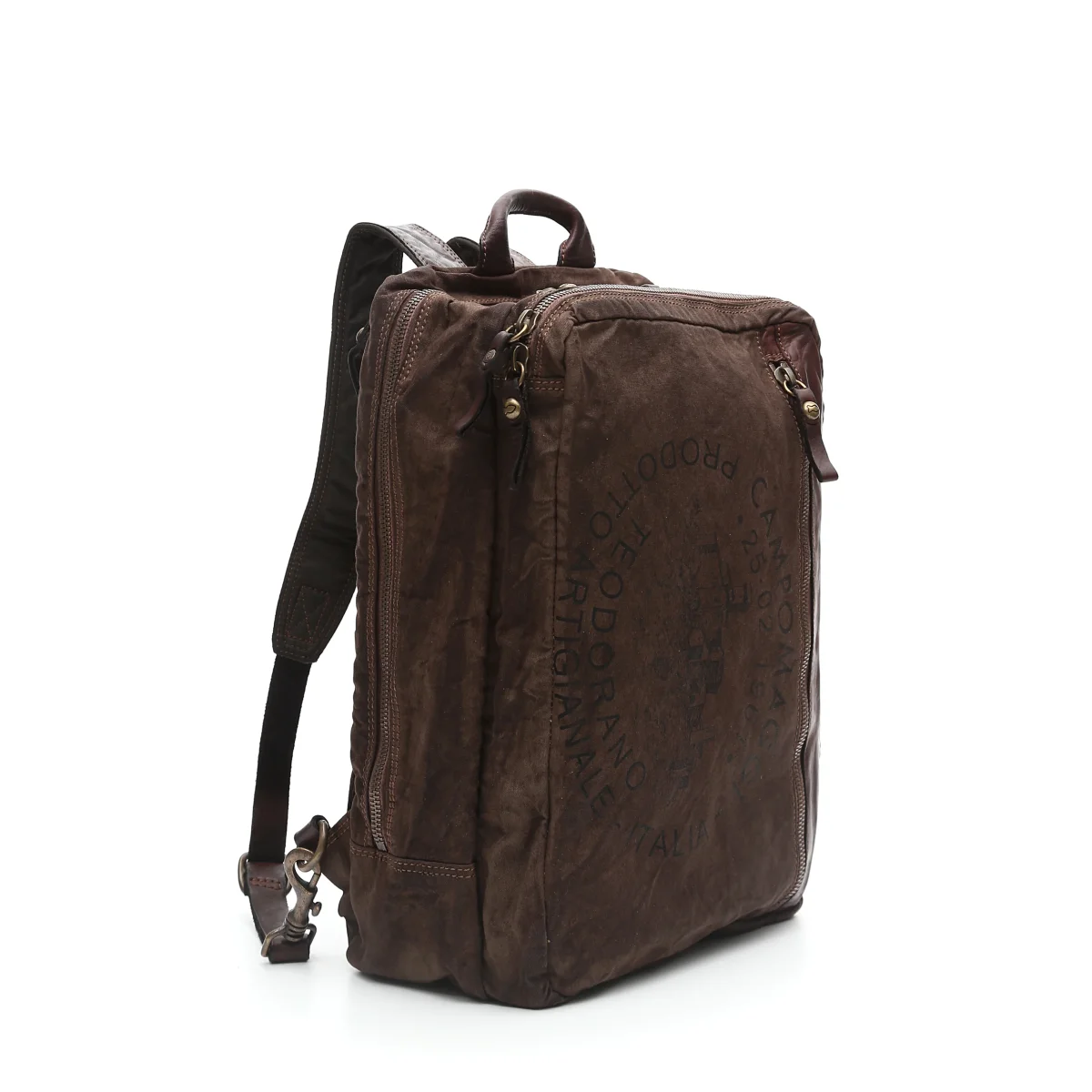 Sac à dos compact, spacieux et polyvalent, avec poignée et bandoulières réglables, poche verticale avant avec fermeture zippée. L’intérieur du sac à dos est constitué d’un seul compartiment doté d’une poche avec fermeture zippée. Fabriqué en toile et cuir de vachette teint en pièce. Dust bag en coton et kit de crème d’entretien inclus. Made in Italy.