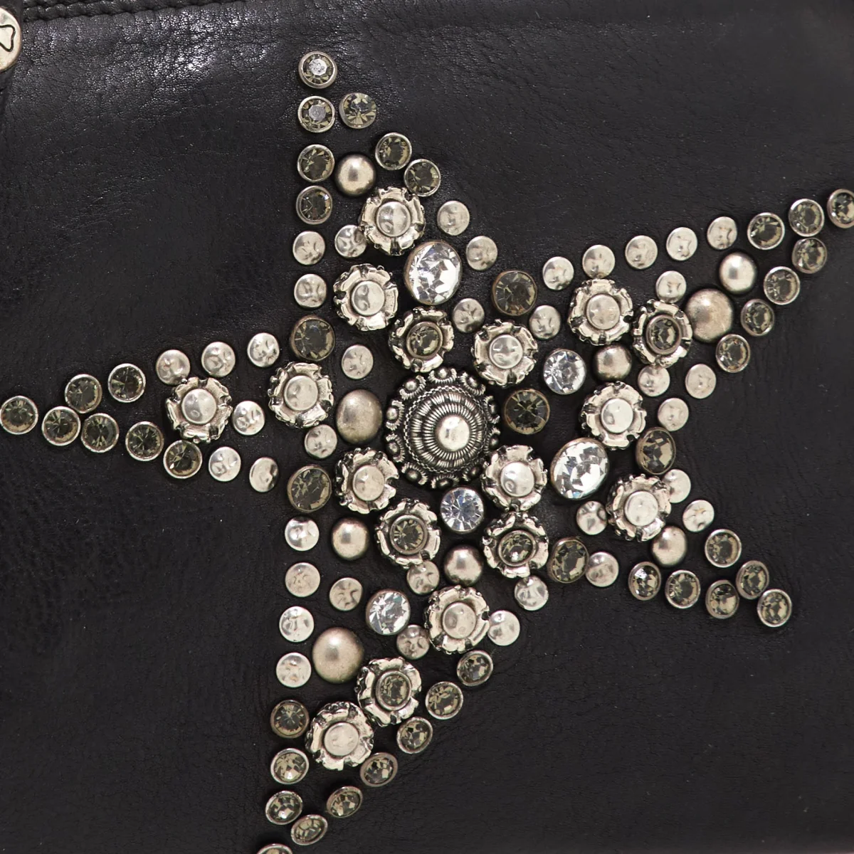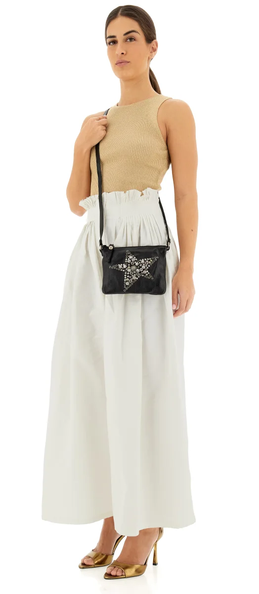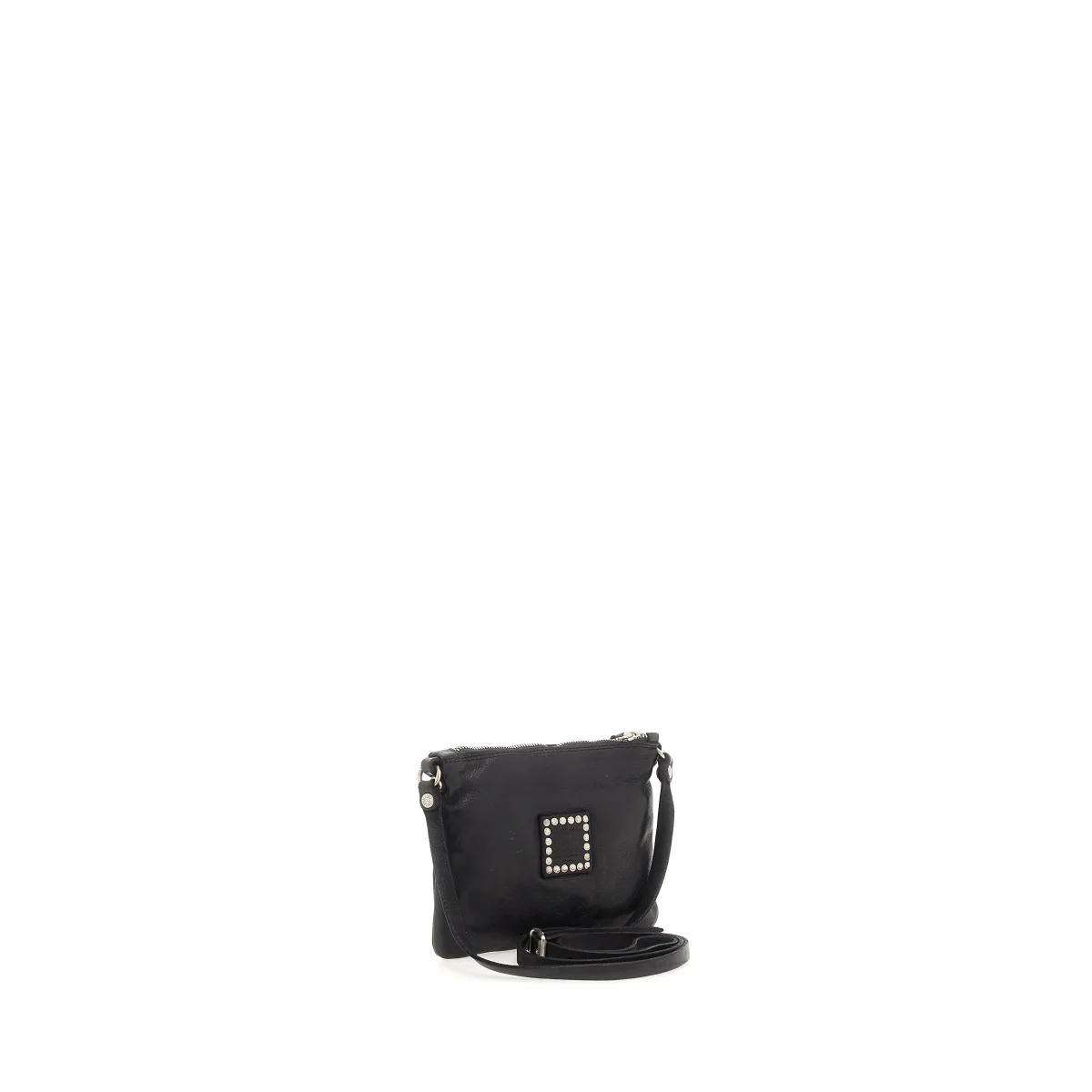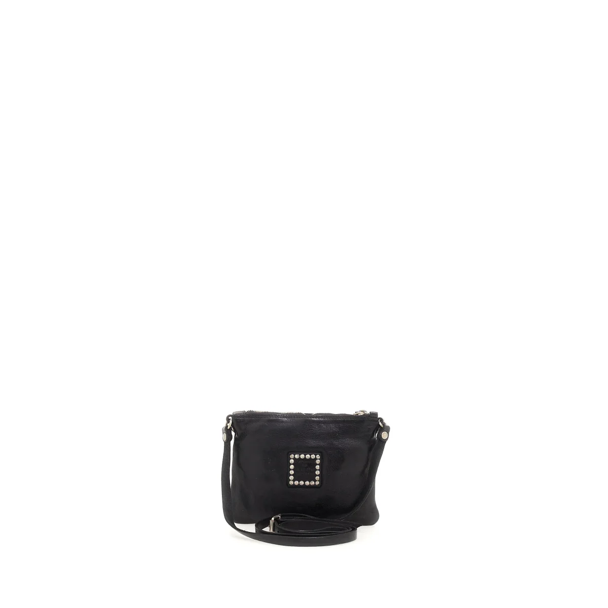 Sac bandoulière en cuir réglable et amovible. Parfait pour vos looks de jour mais aussi pour une soirée élégante. Intérieur entièrement doublé et fermeture éclair. Fabriqué en cuir naturel de vachette teint en pièce avec clous colorés. Dust bag en coton et kit de crème d’entretien inclus.