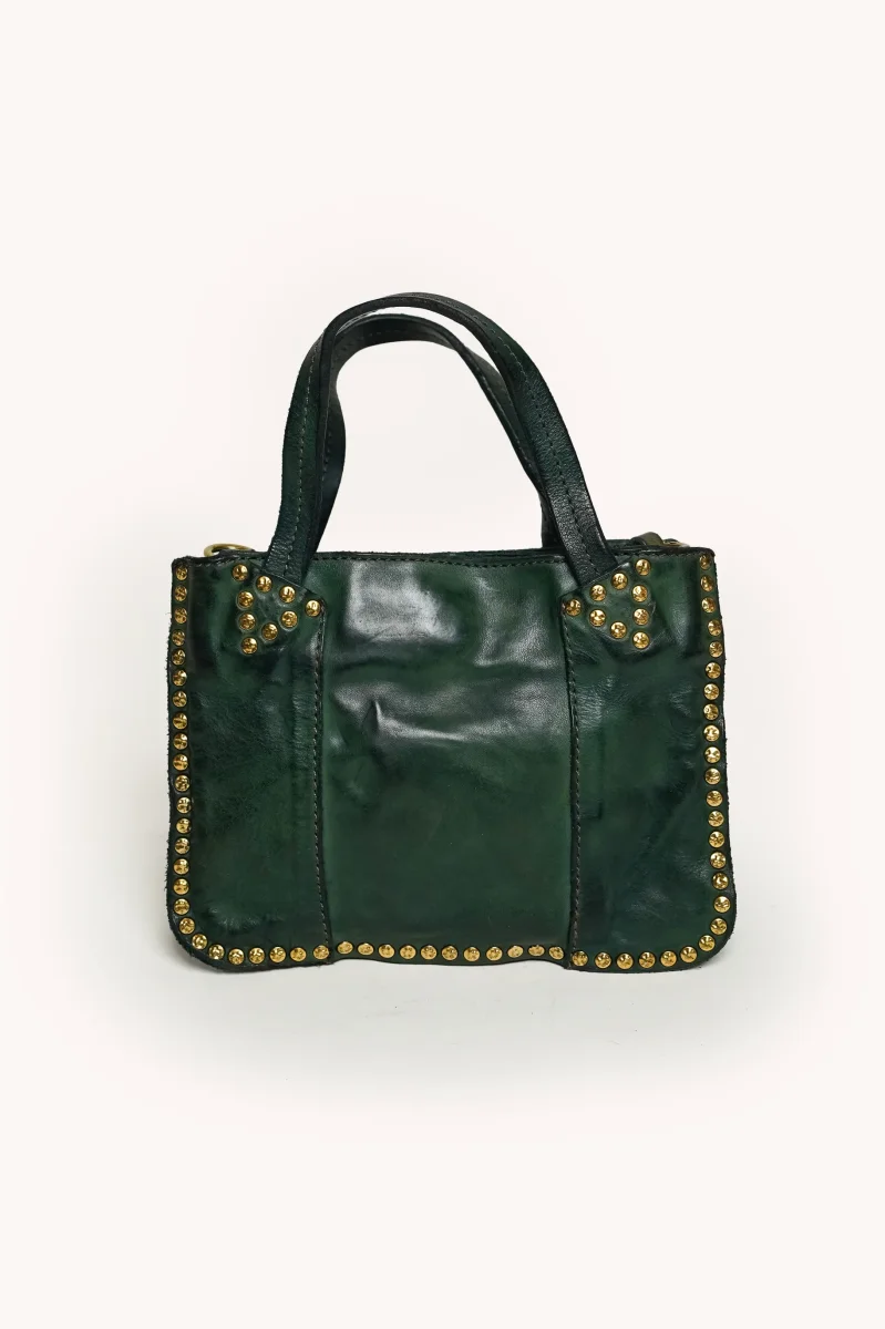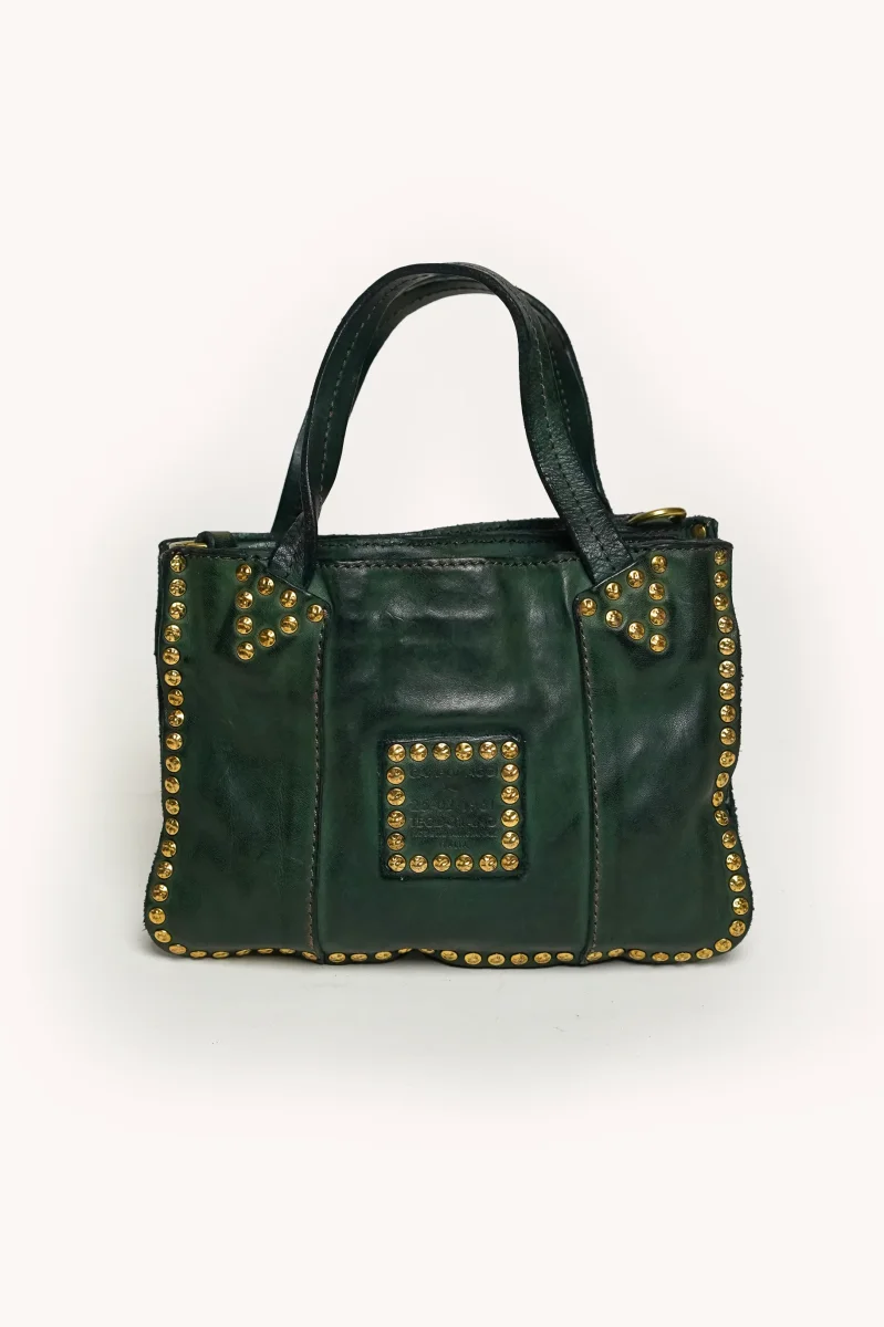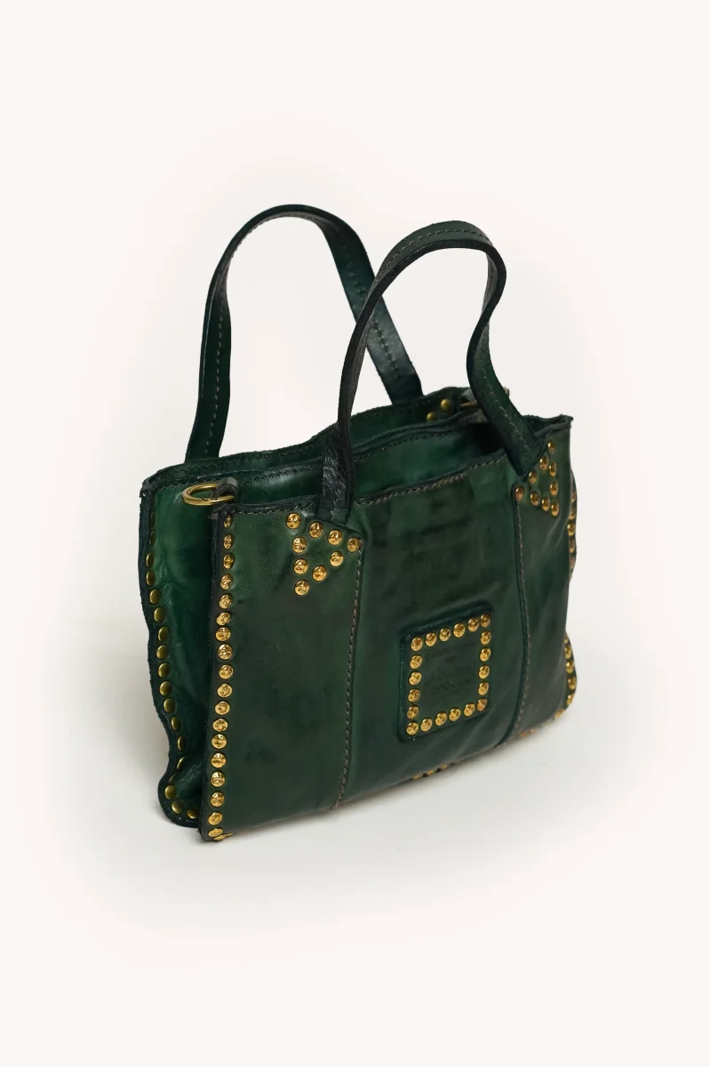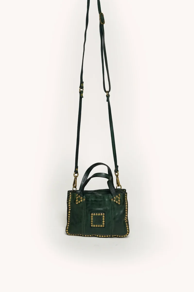 Les détails artisanaux, tels que les coutures apparentes, les boucles métalliques vieillies et les finitions soignées, renforcent le charme vintage et authentique propre à Campomaggi.