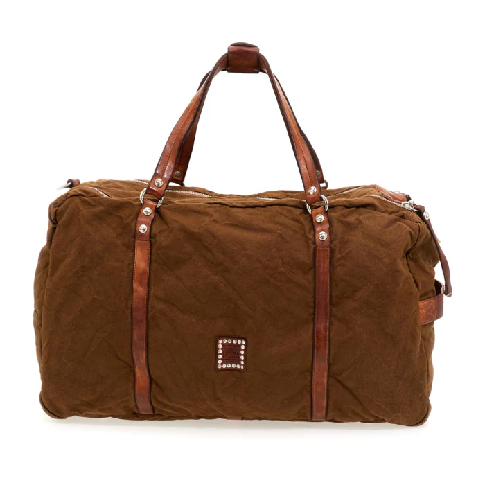 Le sac fourre-tout de la ligne Saturno de Campomaggi est le choix idéal pour ceux qui recherchent un produit léger et polyvalent. Réalisé en juxtaposant la toile Campomaggi au cuir de vachette teinté dans la masse, ce sac fourre-tout allie style et fonctionnalité. Le cuir naturel de vachette teinté dans la masse et le tissu en font un produit résistant et durable dans le temps. Choisissez le sac fourre-tout Saturno pour vos voyages ou pour la salle de sport. • Finition des accessoires en argent • Sac anti poussière en coton et kit de crème d’entretien inclus • Fabriqué en Italie