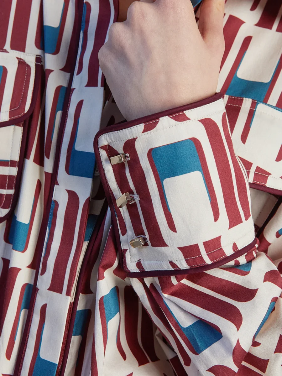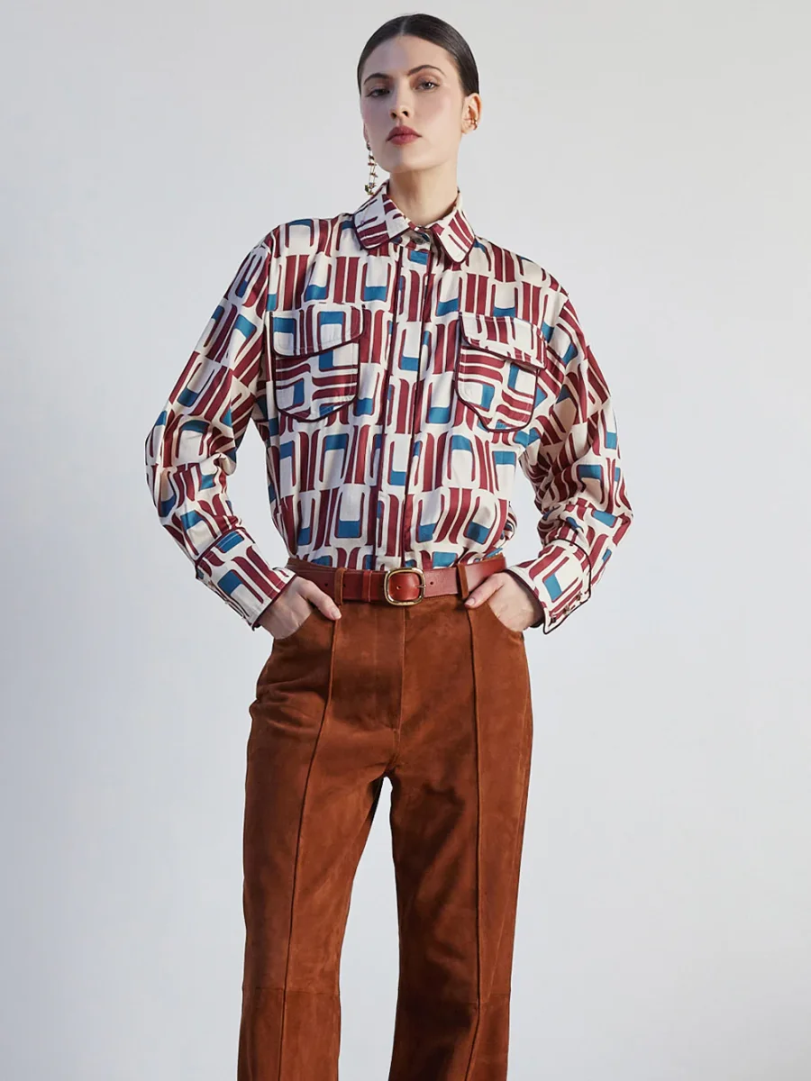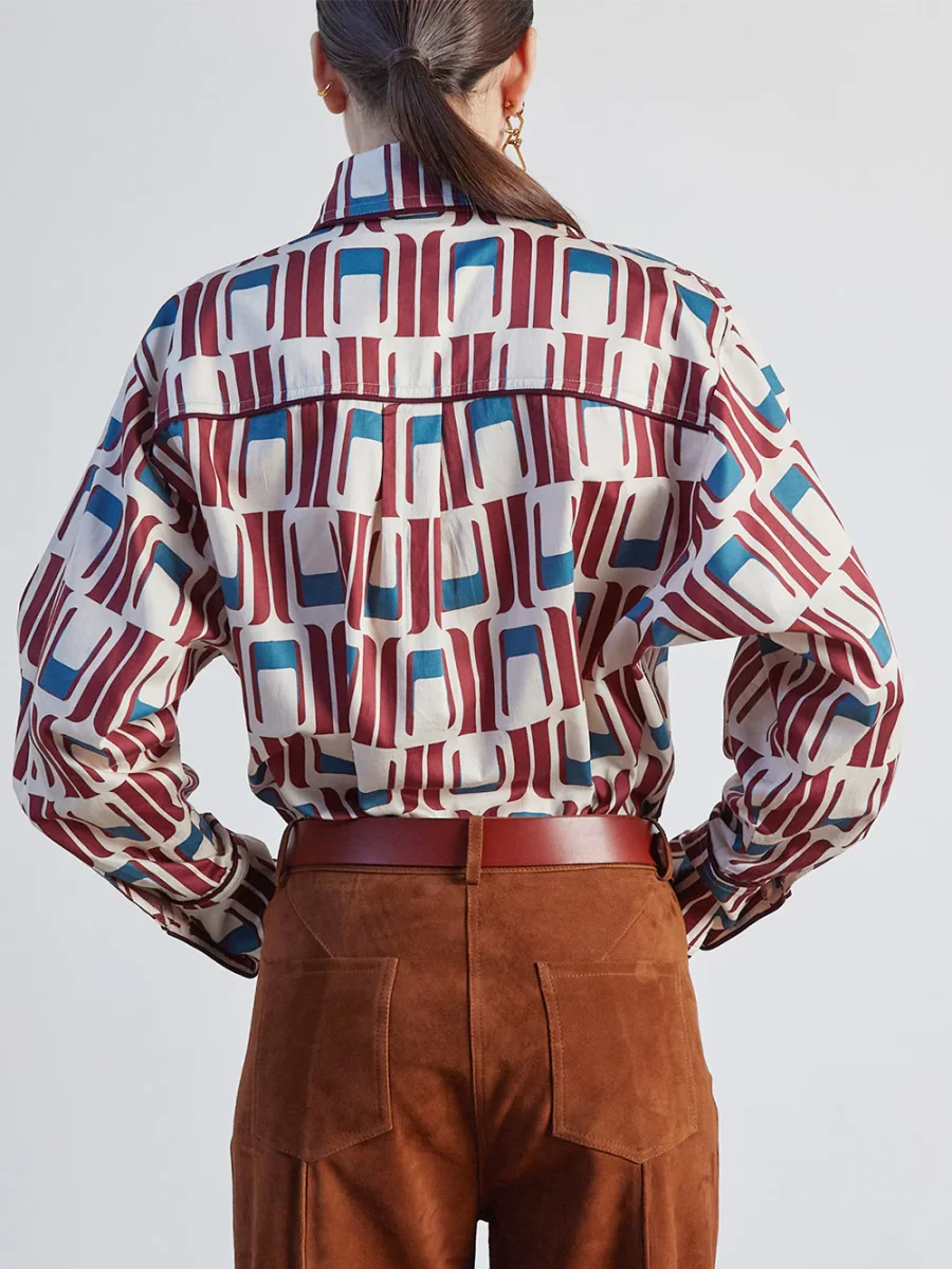 Chemise Wayne Manhattan signée The Label Edition confectionnée en coton aux motifs géométriques dans les tons rouge, bleu et blanc. Une chemise à la coupe droite inspirée de l’ouest américain.