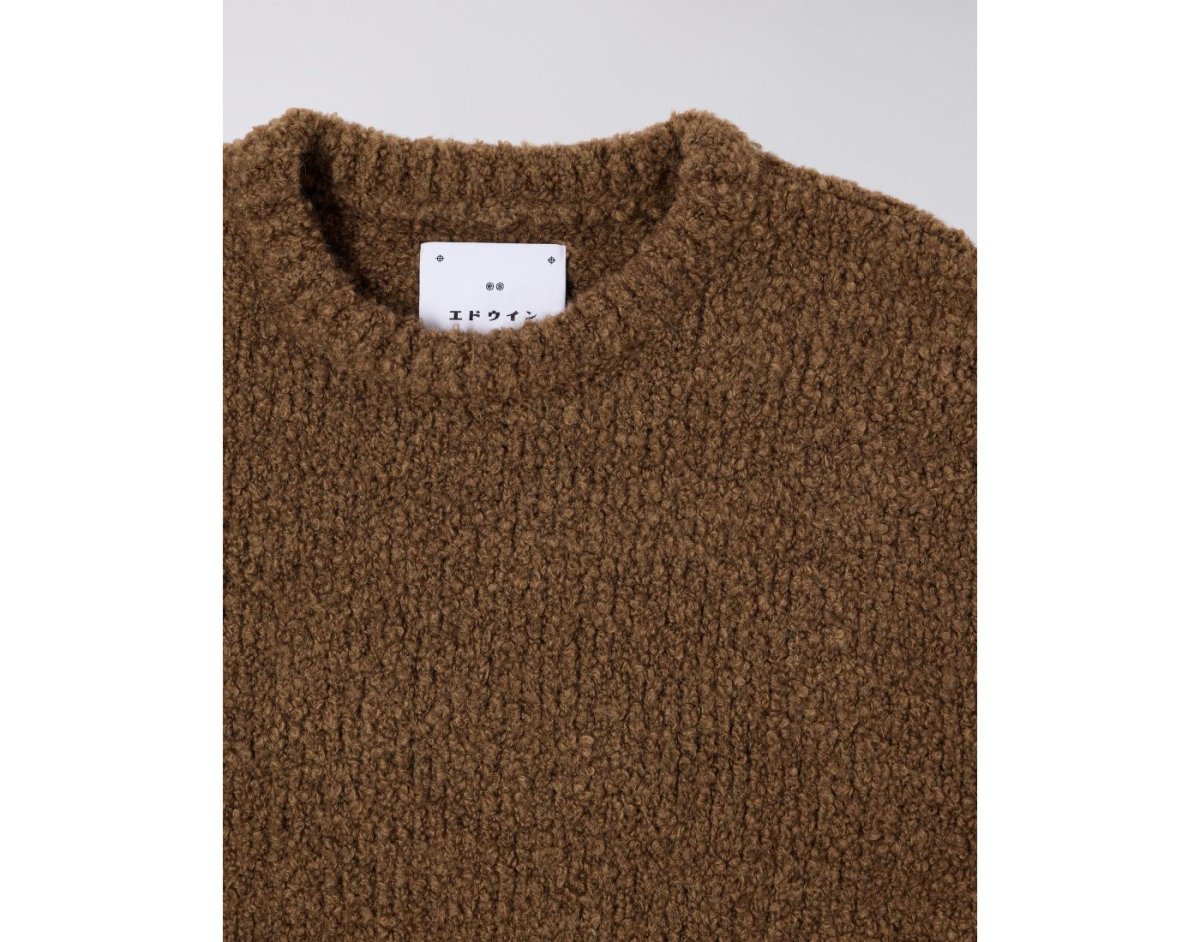 Le pull texturé EDWIN Dun est un pull en maille coupe carrée avec l’étiquette EDWIN brodée sur le côté. Il est confectionné dans un mélange de laine, d’acrylique et de polyester recyclé.