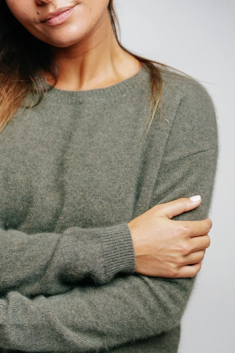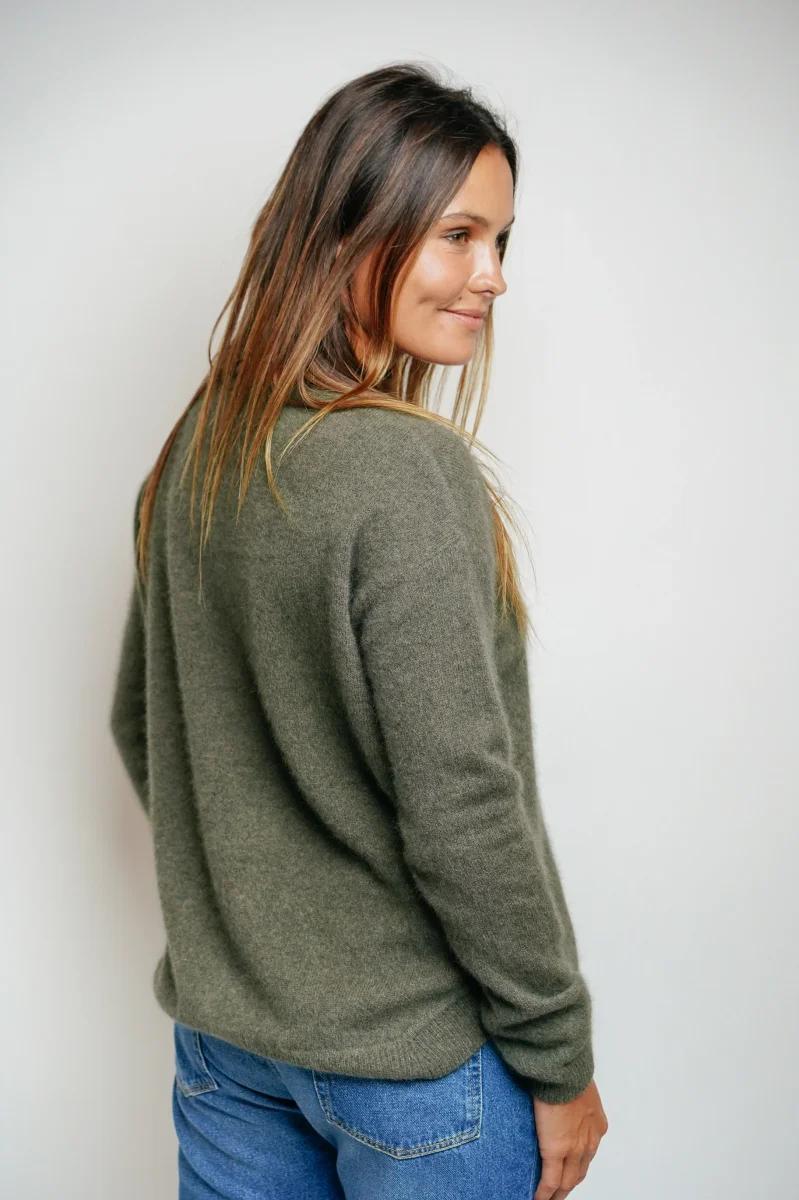Le pull col rond Raccoon Esthème kaki est une pièce incontournable pour l’hiver, confectionnée en 100% laine de raton laveur, une matière naturellement plus chaude que le cachemire. D’une douceur exceptionnelle, ce pull offre une chaleur enveloppante tout en restant léger et agréable à porter au quotidien.