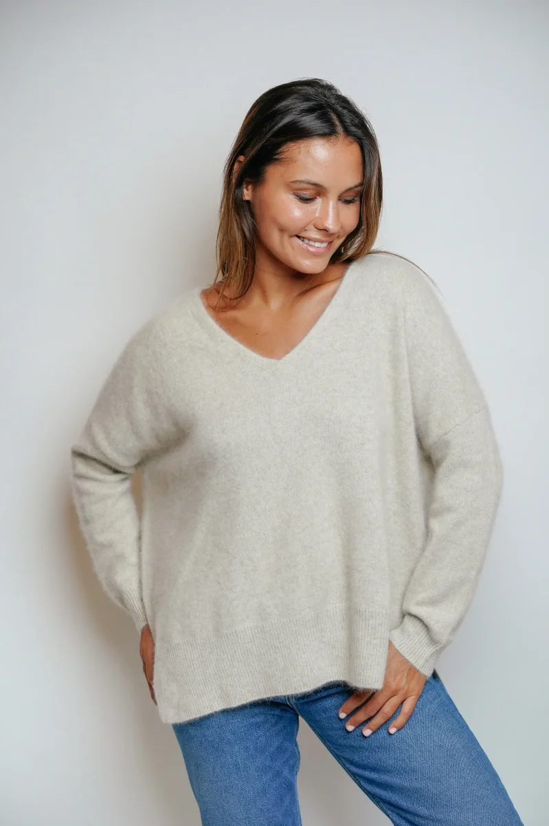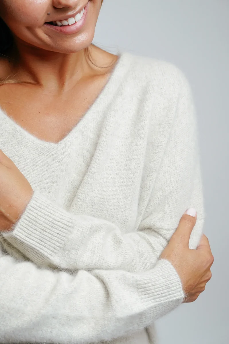 Le pull col V Raccoon Esthème gris chiné est une pièce chaude et raffinée, confectionnée en 100% laine de raton laveur, une matière naturellement plus chaude que le cachemire. D’une douceur exceptionnelle, ce pull enveloppe la silhouette tout en offrant une chaleur optimale, idéale pour les journées hivernales.