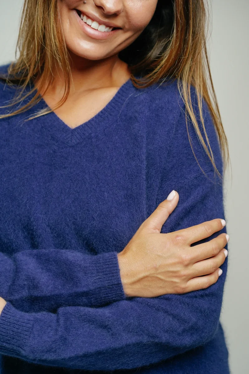 Le pull petit col V Raccoon Esthème marine est une pièce élégante et chaleureuse, confectionnée en 100% laine de raton laveur, une matière naturellement plus chaude que le cachemire. D’une douceur exceptionnelle, il enveloppe la silhouette d’une chaleur confortable tout en restant léger et agréable à porter.