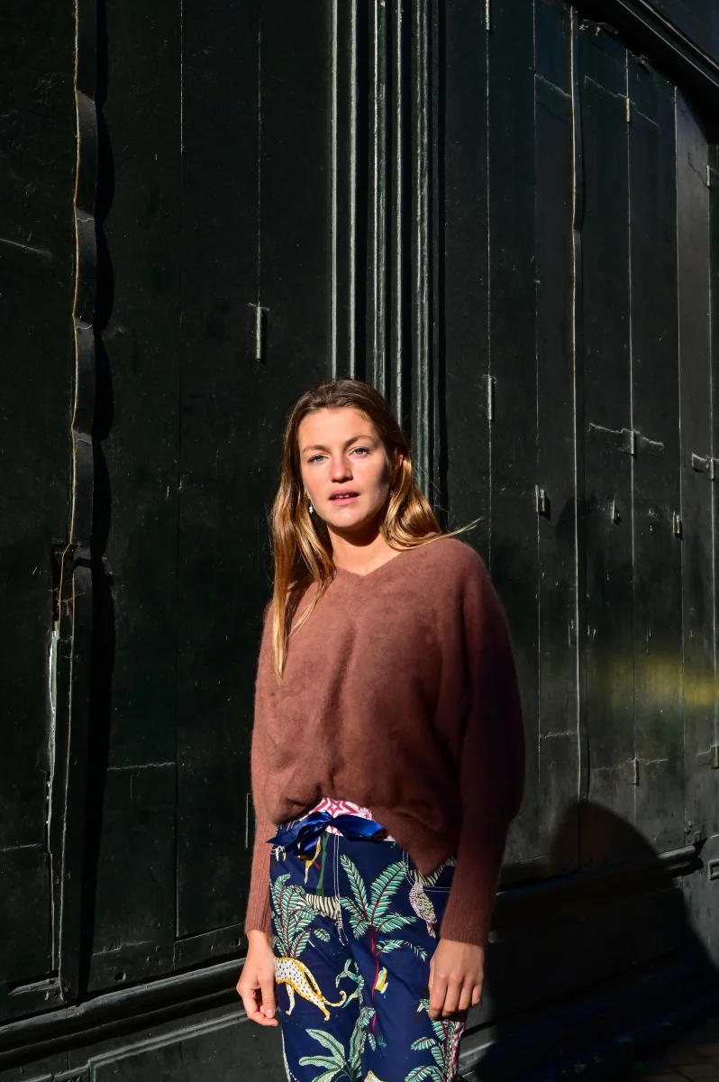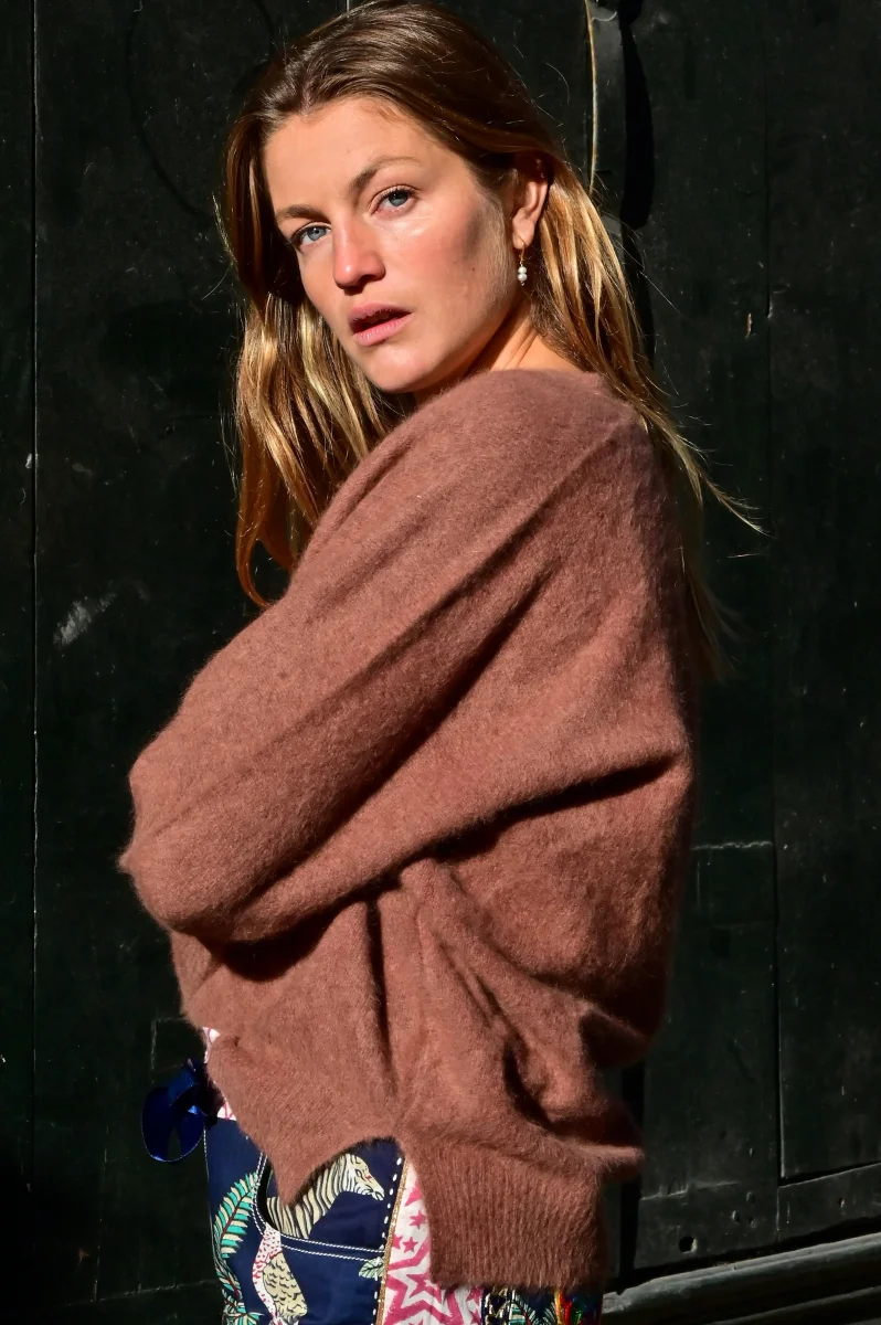 Le pull col V Estheme en laine de raccoon est l’allié parfait pour l’hiver.