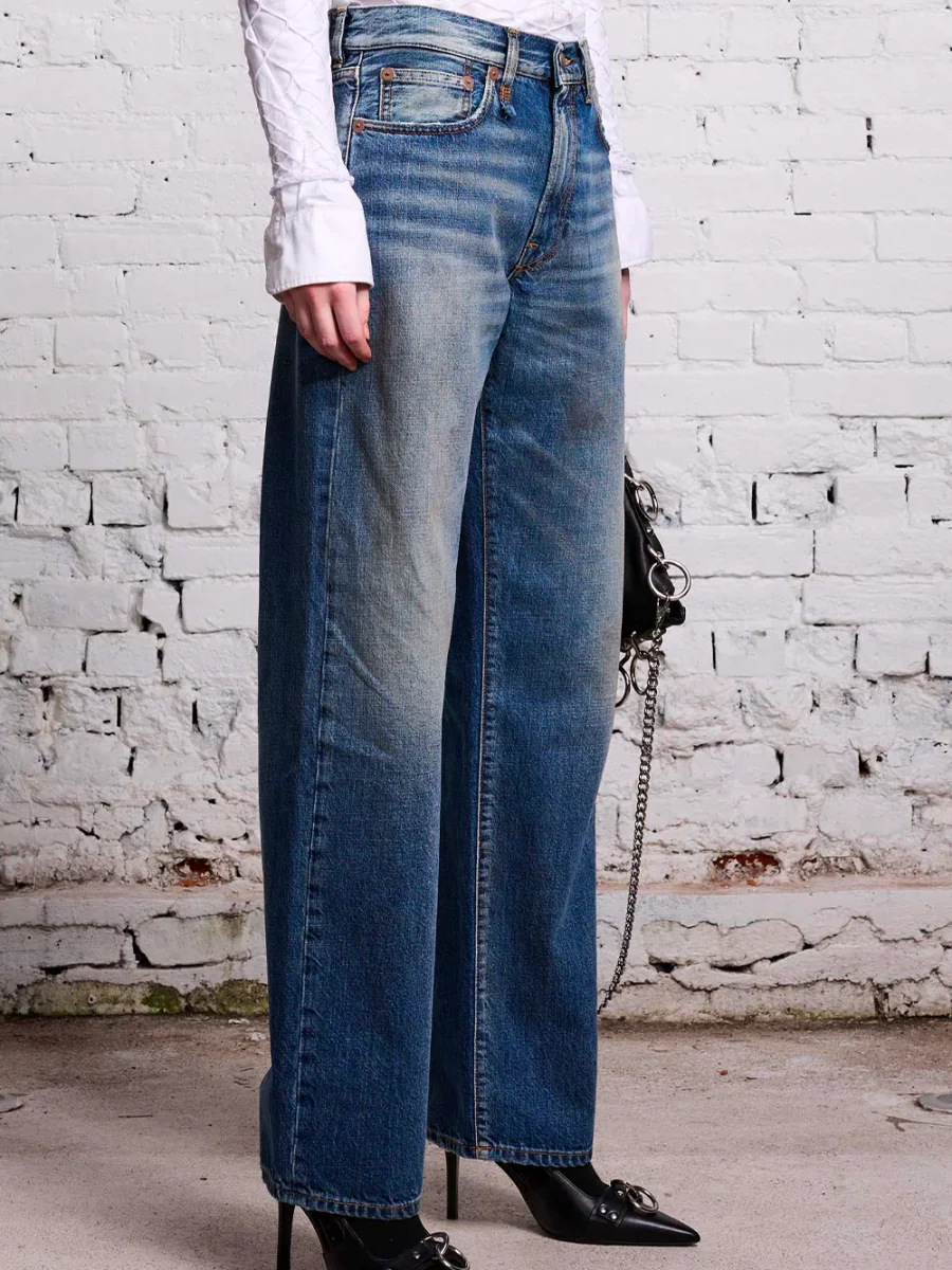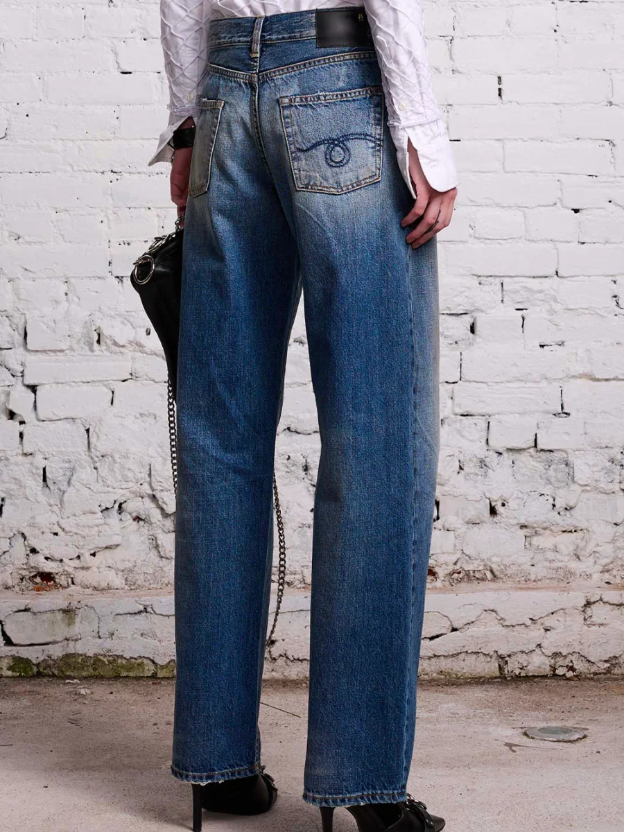 Jean Alice Slim Straight Legf de R13. Ce jean en coton a une coupe droite. – Taille haute – Coupe fine et droite – Couleur bleu denimLe modèle mesure 1m80 et porte une taille 25.