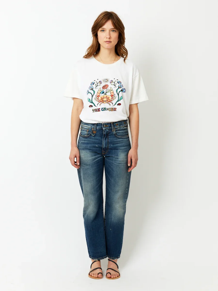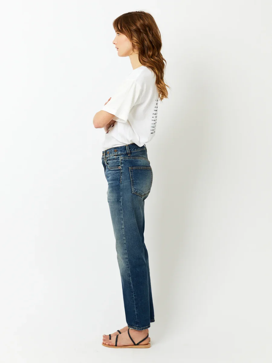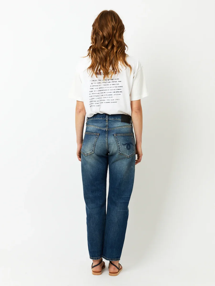 Ce jean Boyfrien signé R13 est confectionné dans une toile de coton japonaise bleu foncé effet délavé. Une coupe moderne aux inspirations vintage.