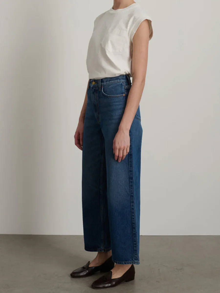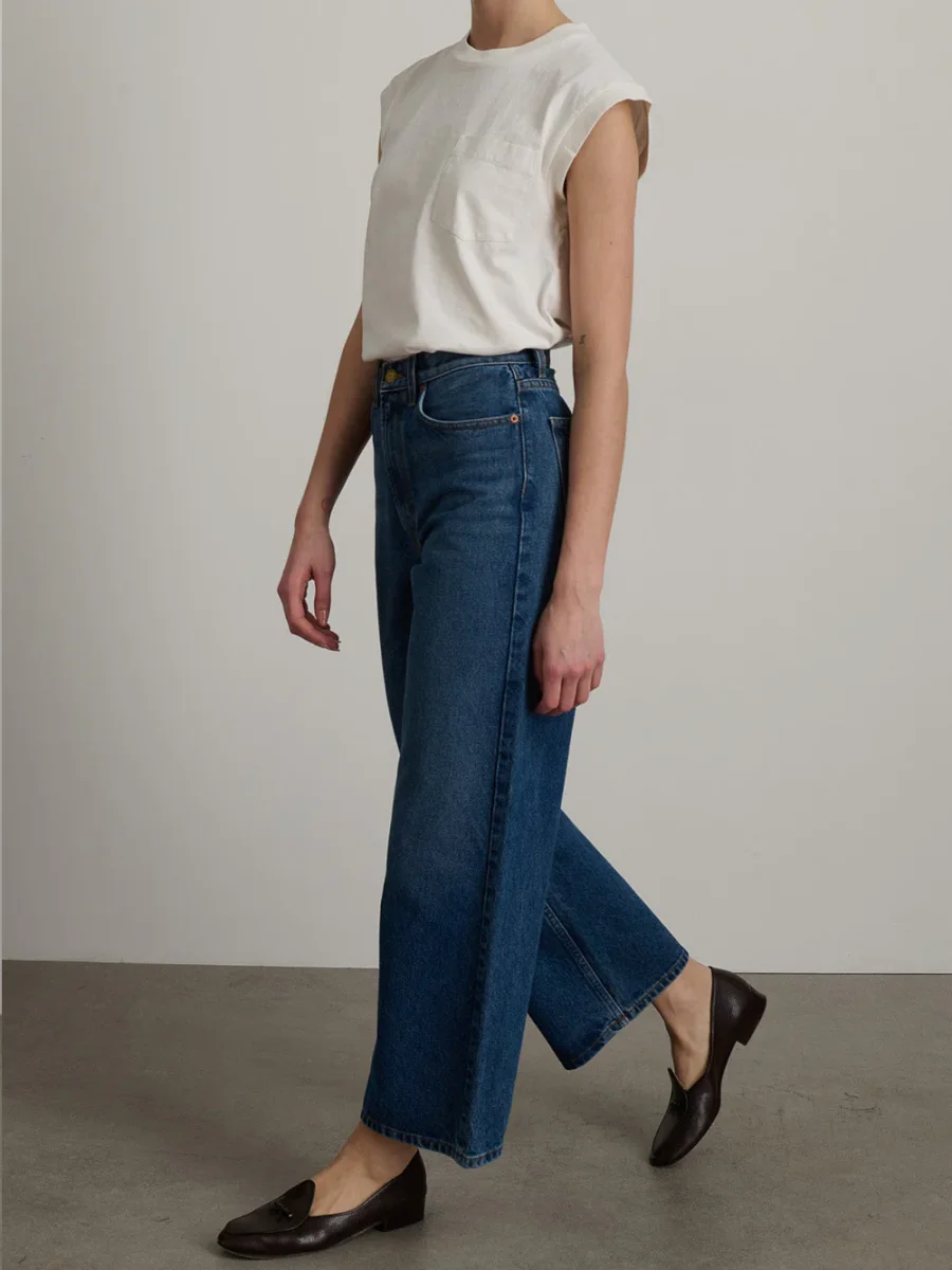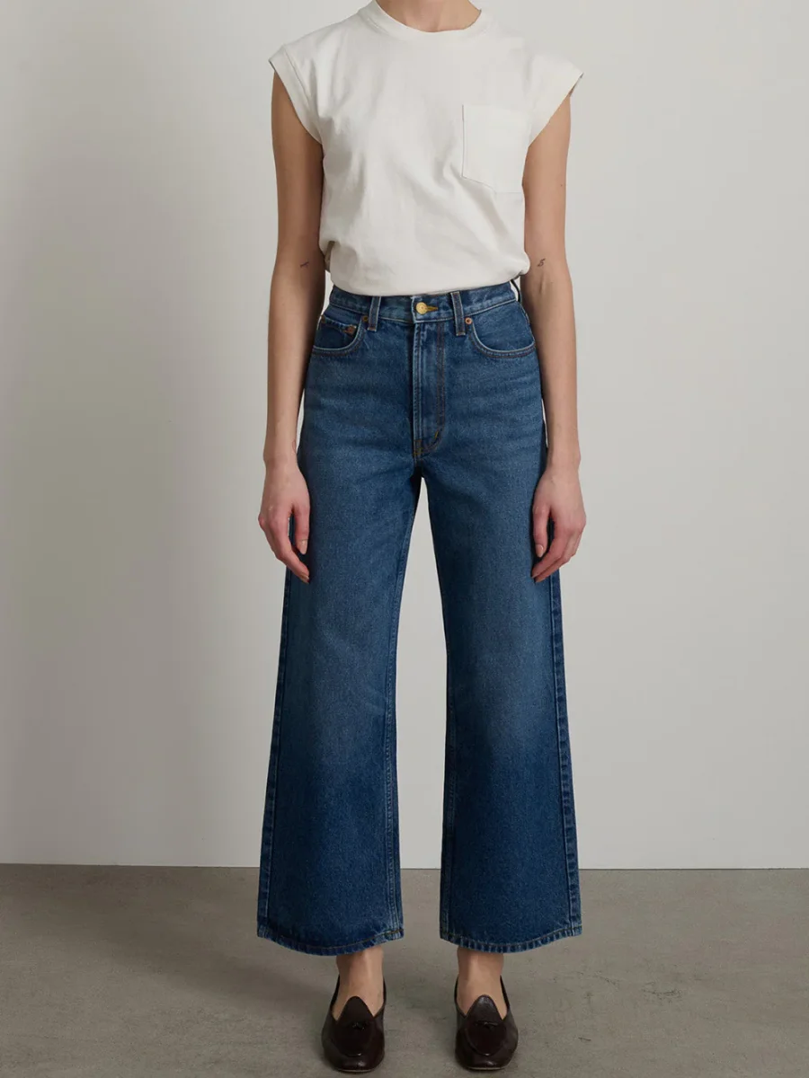 Le jean Elissa couleur Cate Wash de la marque BSIDES en denim bleu a une coupe flatteuse et décontractée, une taille haute et une jambe large. Cette pièce est conçue à New York et fabriquée de manière responsable à Los Angeles.