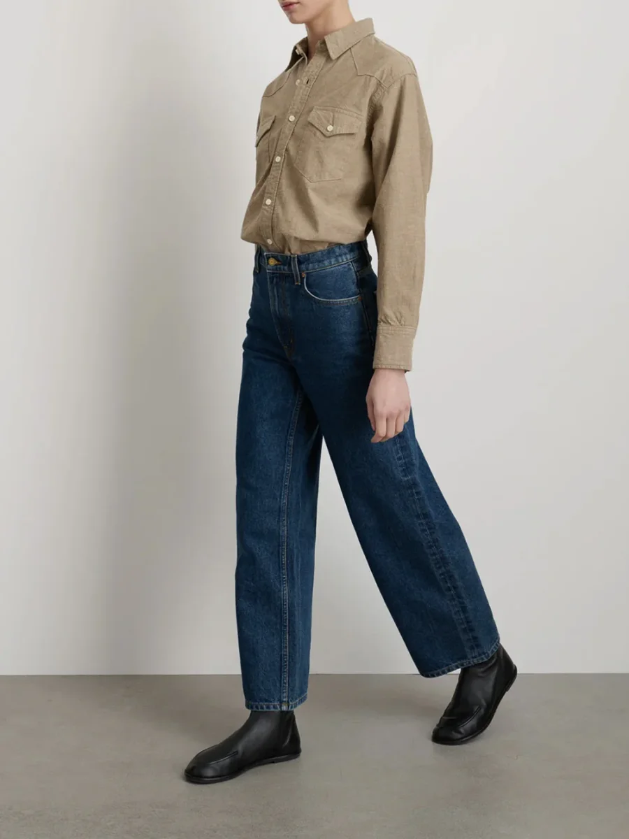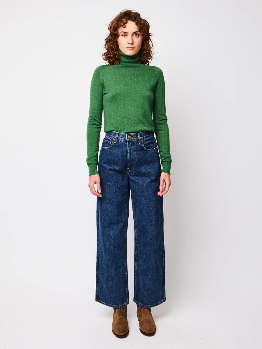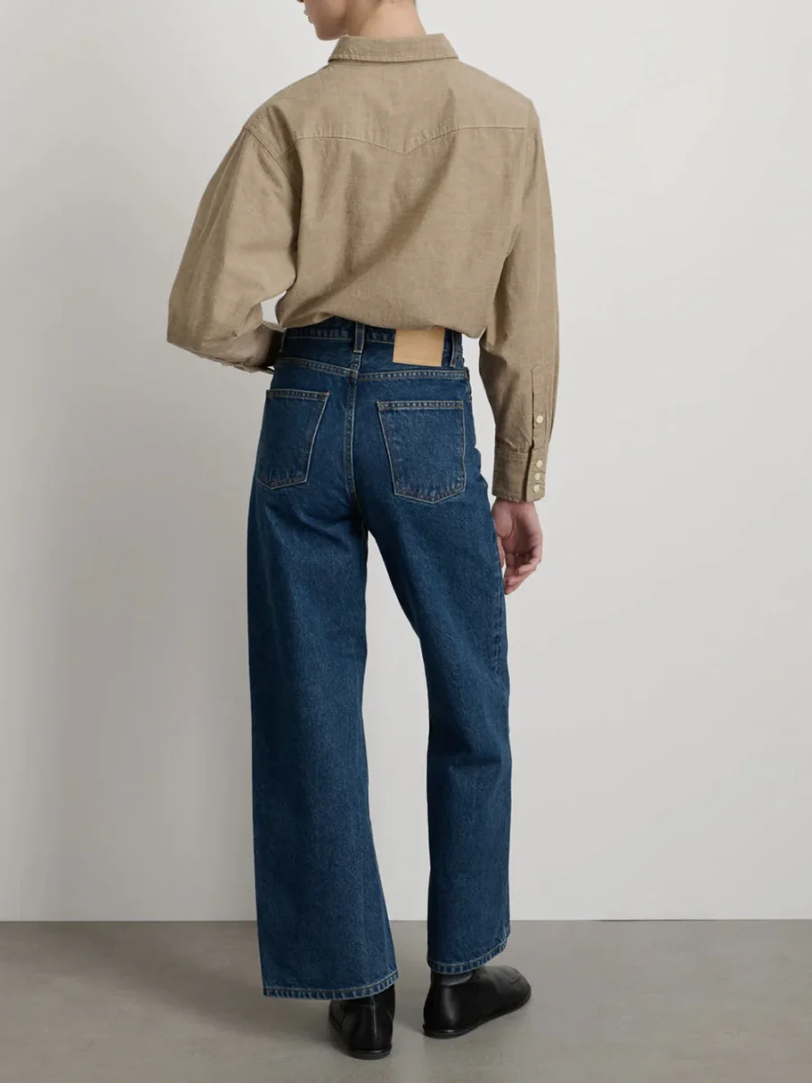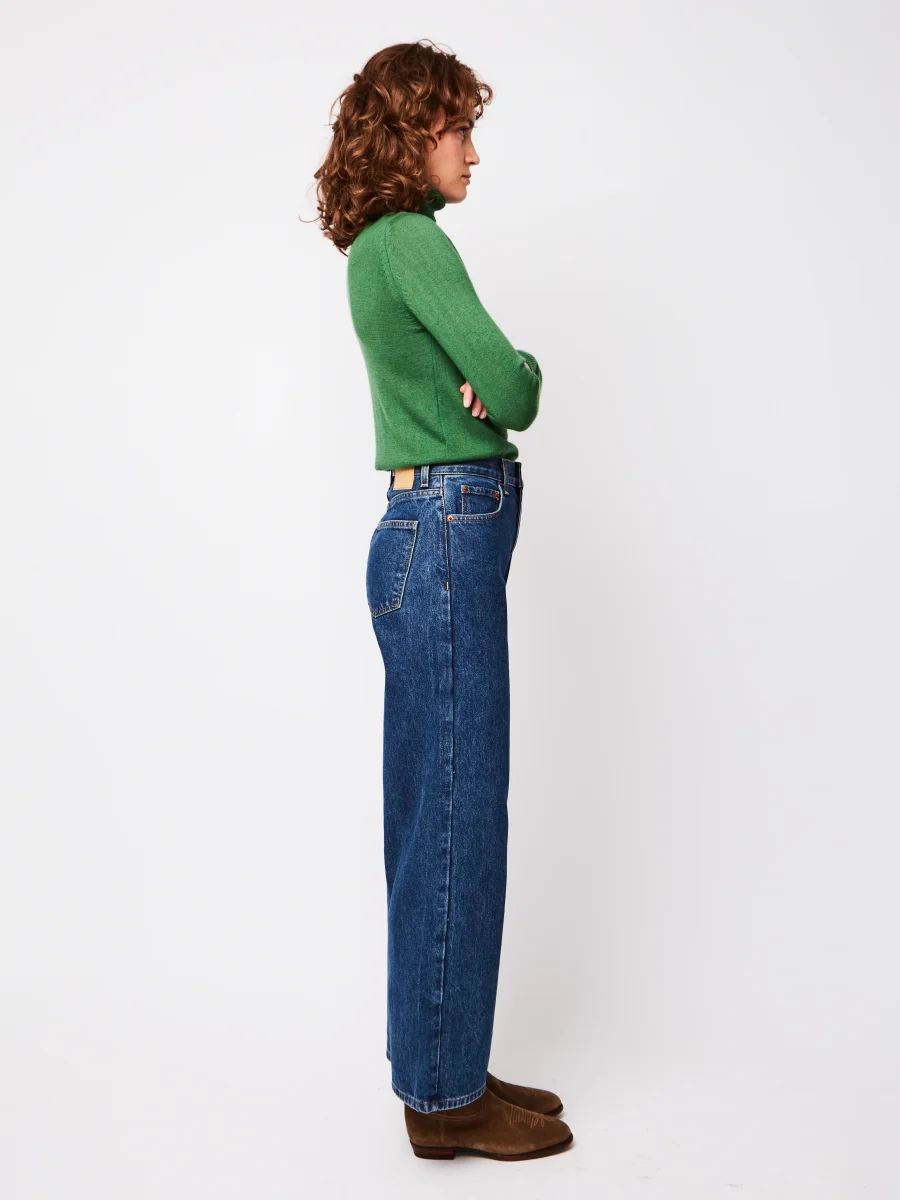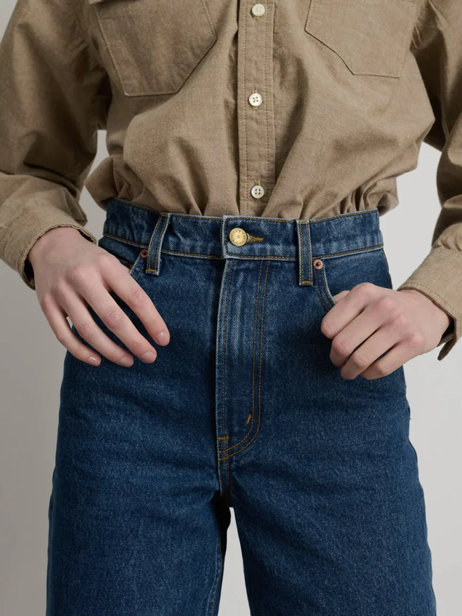 Ce jean Elissa High Wide coloris Coco Wash réalisé par B SIDES est fabriqué aux Etats-Unis.