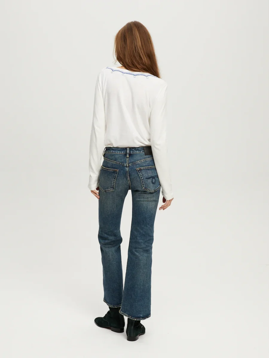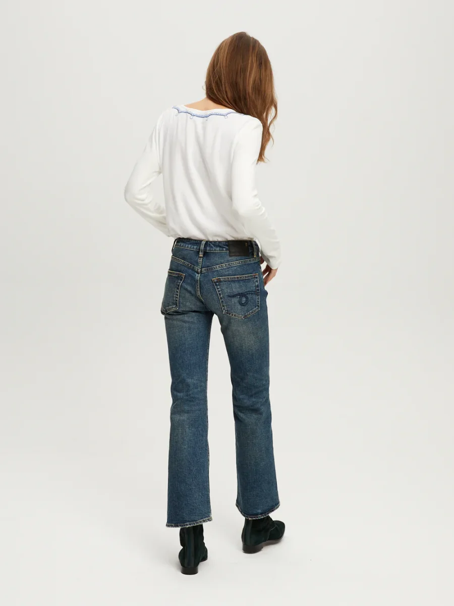 Jean Romeo Hutton Blue signé R13 confectionné dans une toile de coton japonaise de couleur bleu. Une coupe droite, près du corps, avec une taille mi-haute et une longueur cheville.