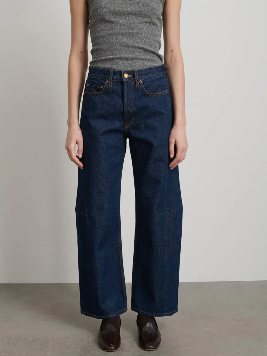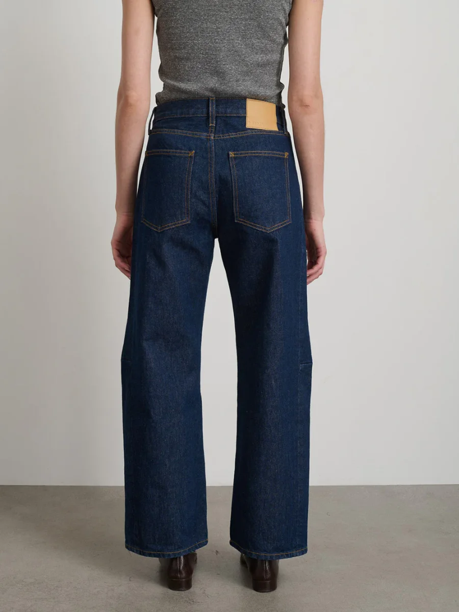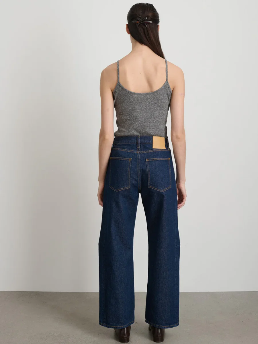 Jean Slim Lasso couleur Indigo Rinse signé BSIDES. Taille mi-haute, des jambes larges légèrement évasées et de pleine longueur, le tout lui assurant un look cool et décontracté. Cette pièce est conçue à New York et fabriquée de manière responsable à Los Angeles.