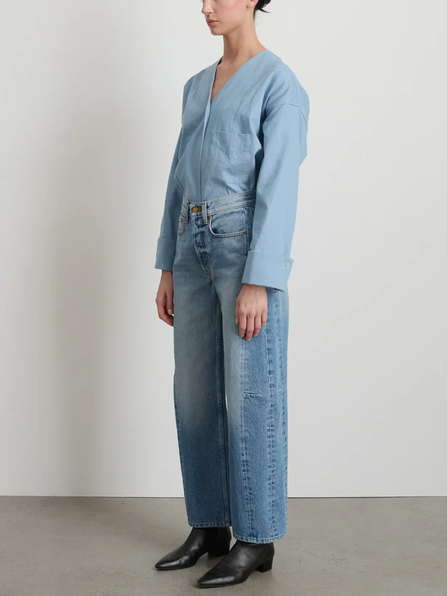 Ce jean Slim Lasso Long couleur Tate Vintage de la marque BSIDES possède une taille mi-haute, des jambes larges légèrement évasées et de pleine longueur, le tout lui assurant un look cool et décontracté. Cette pièce est conçue à New York et fabriquée de manière responsable à Los Angeles.