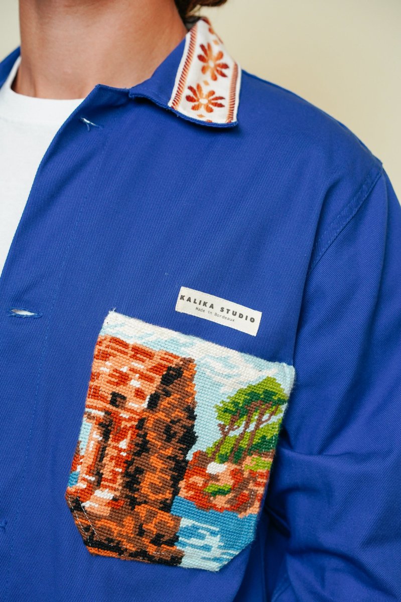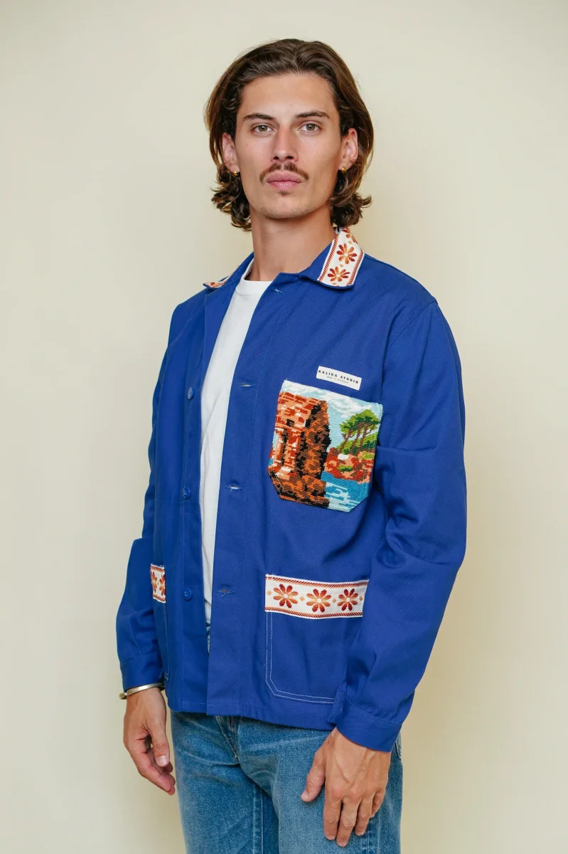 Kalika donne un second souffle au traditionnel bleu de travail avec ses détails cousus mains. Chaque veste est une pièce unique.