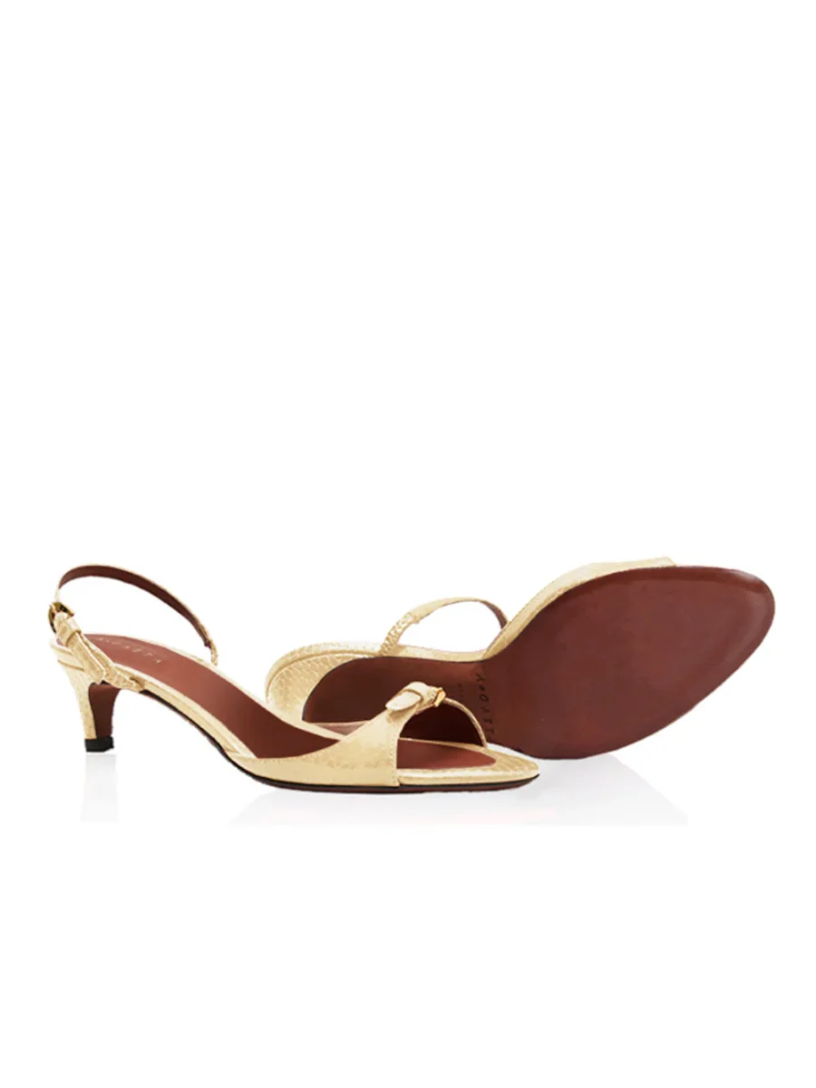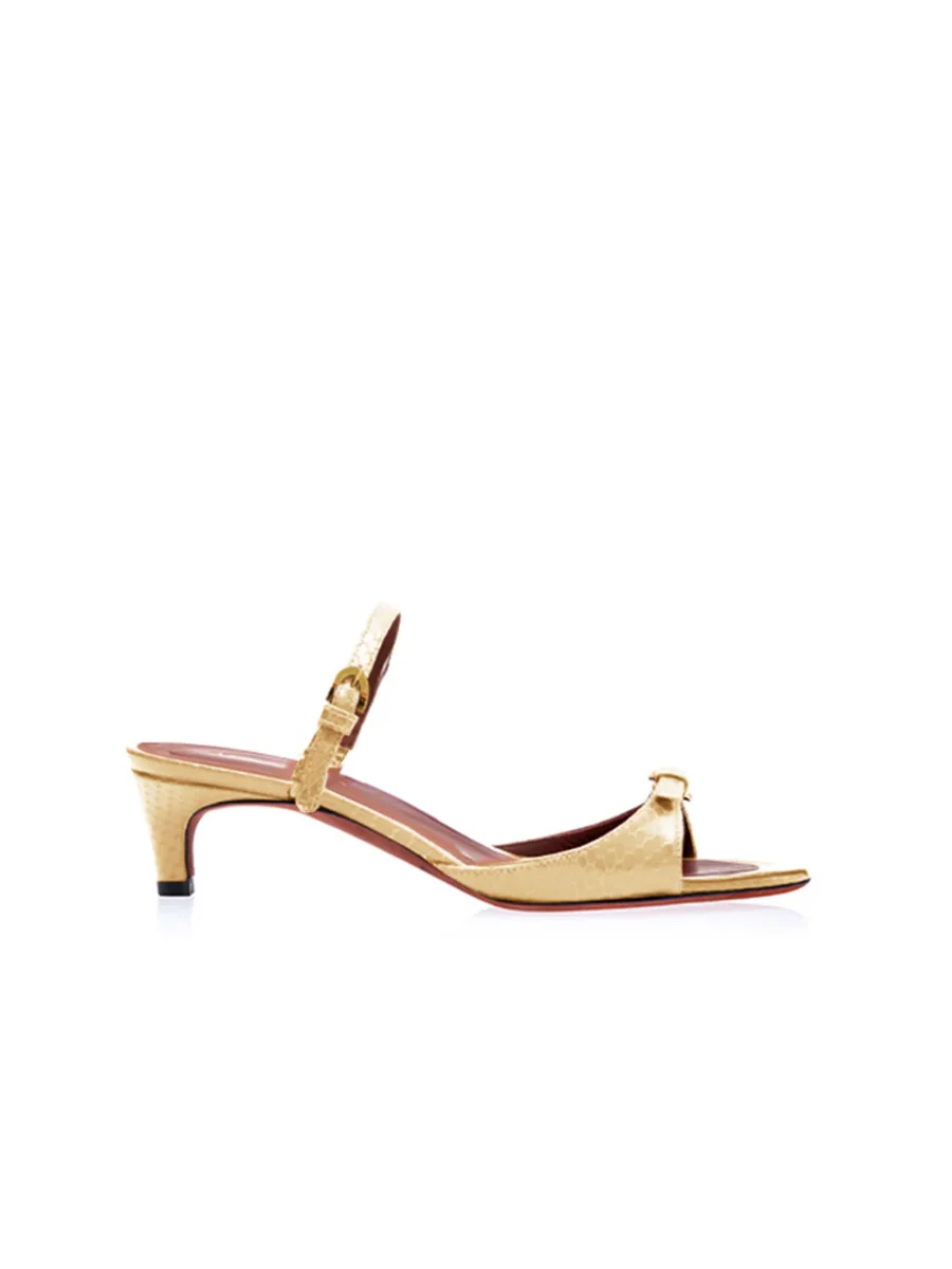 La Capricciosa Snake Butter signée A Di Gaeta confectionnée en cuir imitation serpent de couleur jaune beurre. Une paire de sandales glamour inspirée des années 1990.