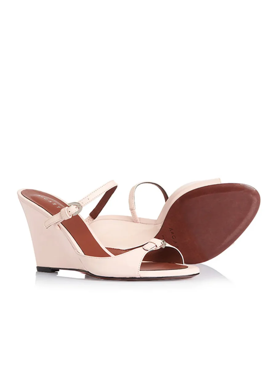 La Viziatissima Gold Mirror signée A Di Gaeta confectionnée en cuir italien rose pâle. Une paire de sandales glamour inspirée des années 1990.