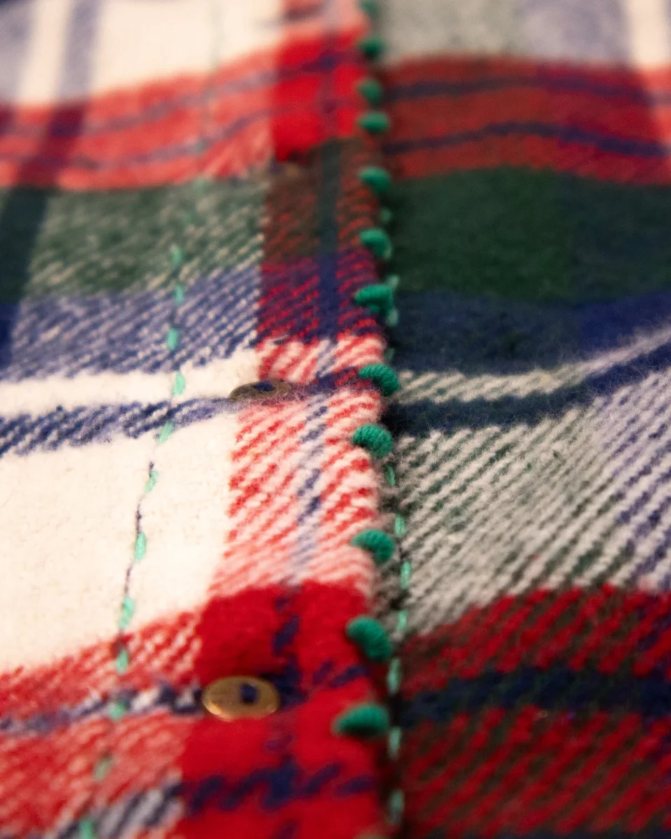 Son motif tartan apporte une touche classique et intemporelle, facile à associer avec des pantalons ou jupes pour des looks décontractés ou plus habillés. Les finitions soignées et les détails subtils reflètent le savoir-faire artisanal de la marque.