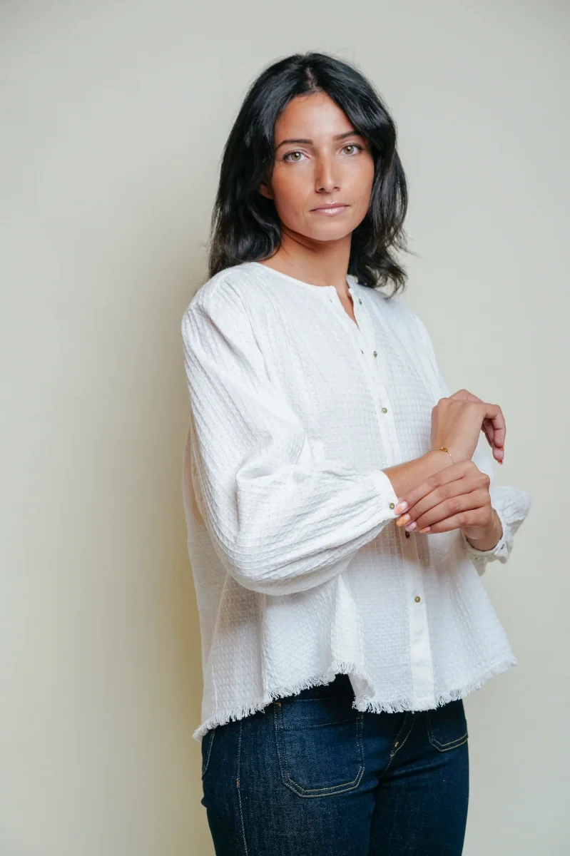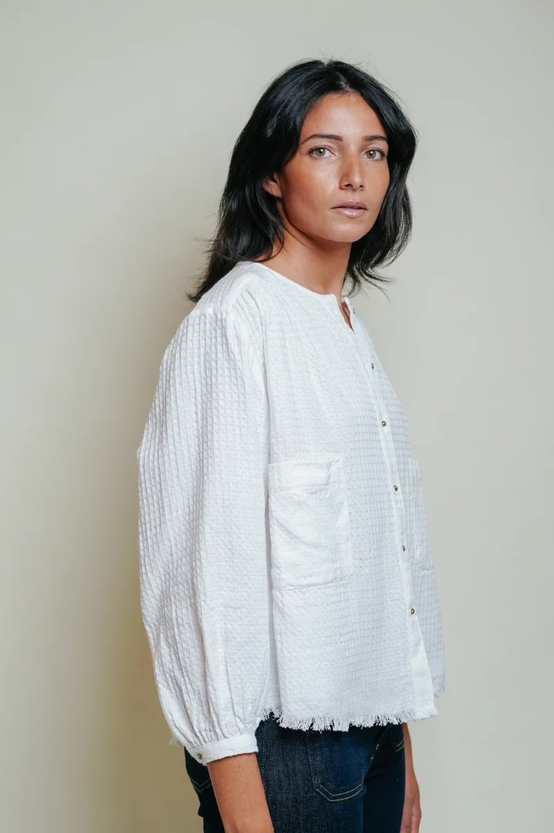 L’ÎLE BLEUE – Blouse Kamini – nid d’abeille blanche