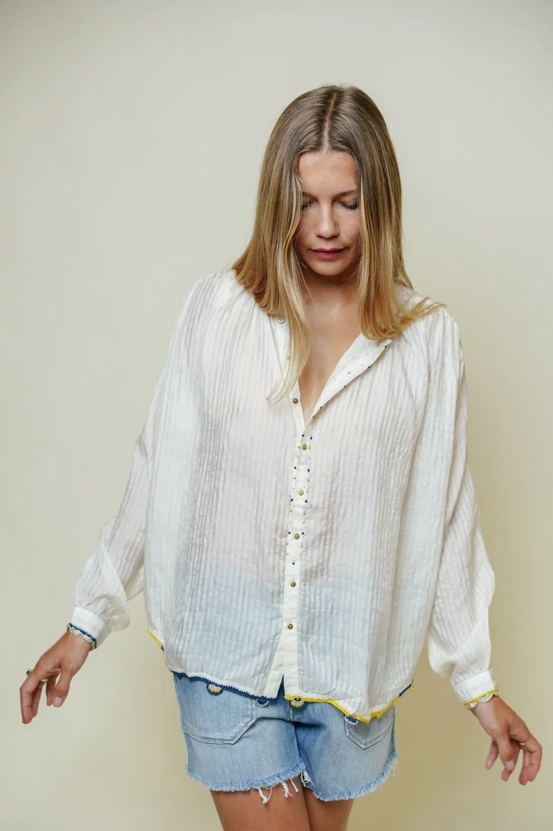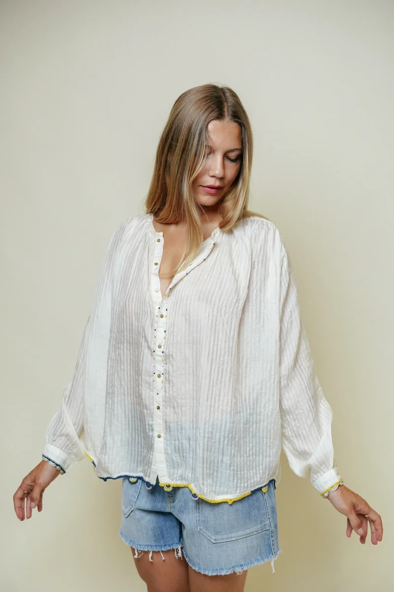 Apportez une touche de douceur et d’élégance à votre garde-robe avec la blouse Lily en coton naturel signée L’Île Bleue. Confectionnée en 100% soie, elle se distingue par sa coupe fluide et son confort inégalé, idéale pour les journées ensoleillées ou pour des superpositions plus habillées. Son col tunisien subtilement souligné par une broderie artisanale […]