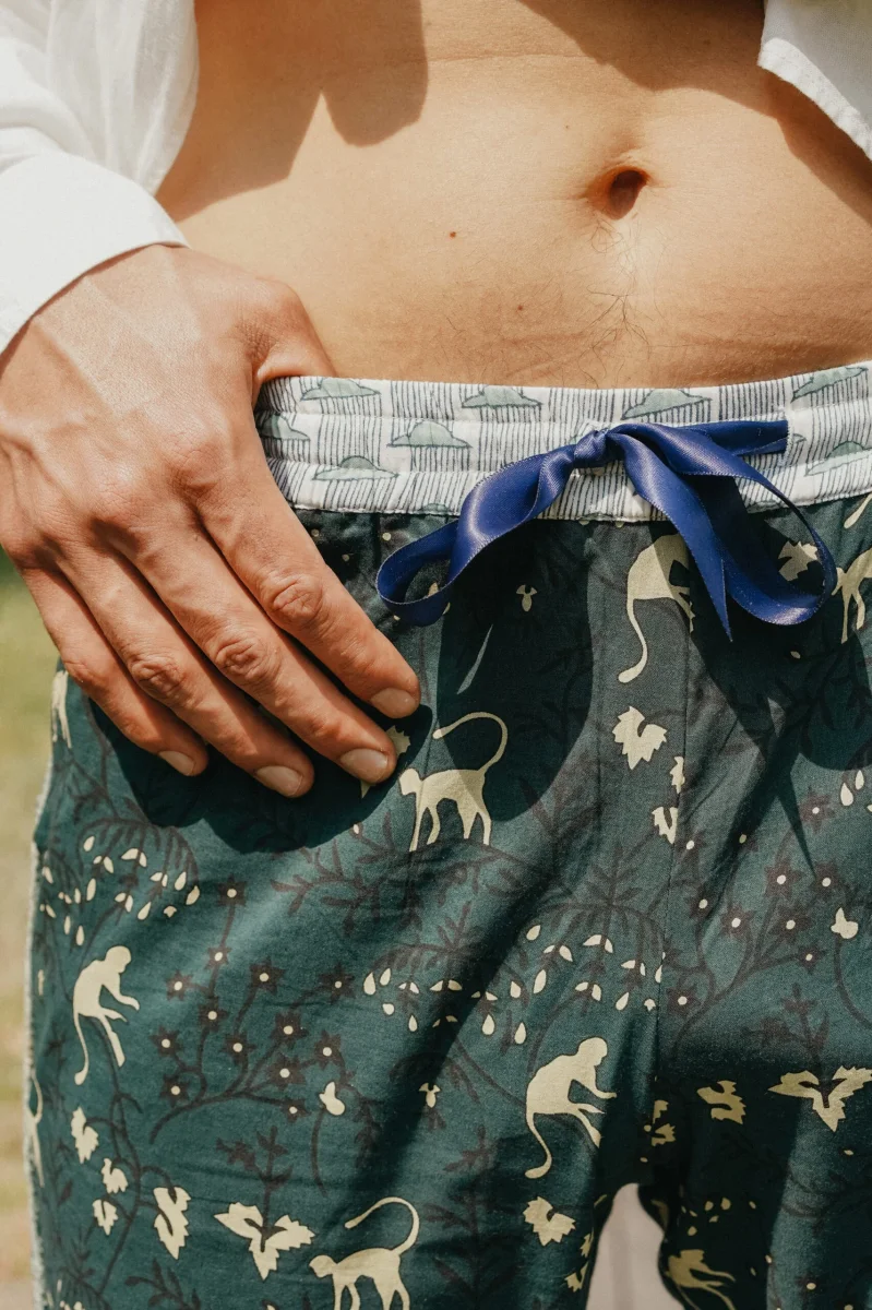 - Pantalon en voile 100% coton, block print