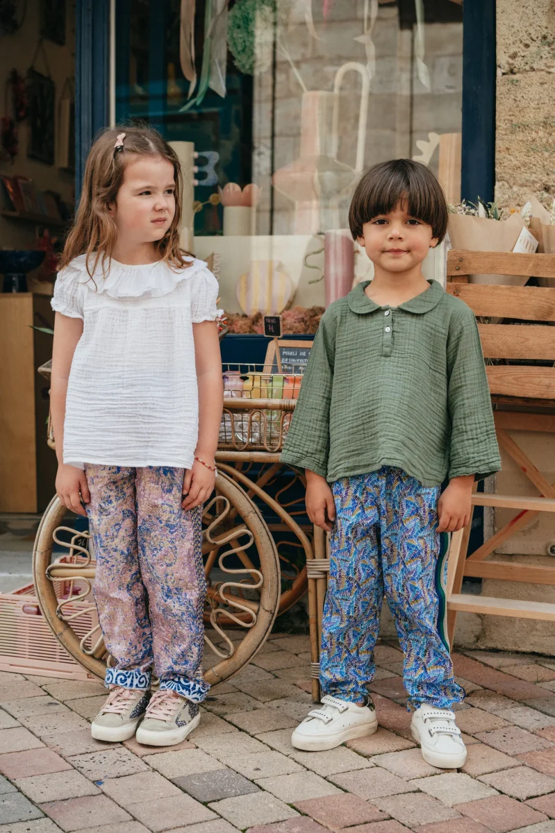 Une galon brodé sur le côté de la jambe ainsi que le nom du boubou brodé au fil doré au niveau de la poche avant.