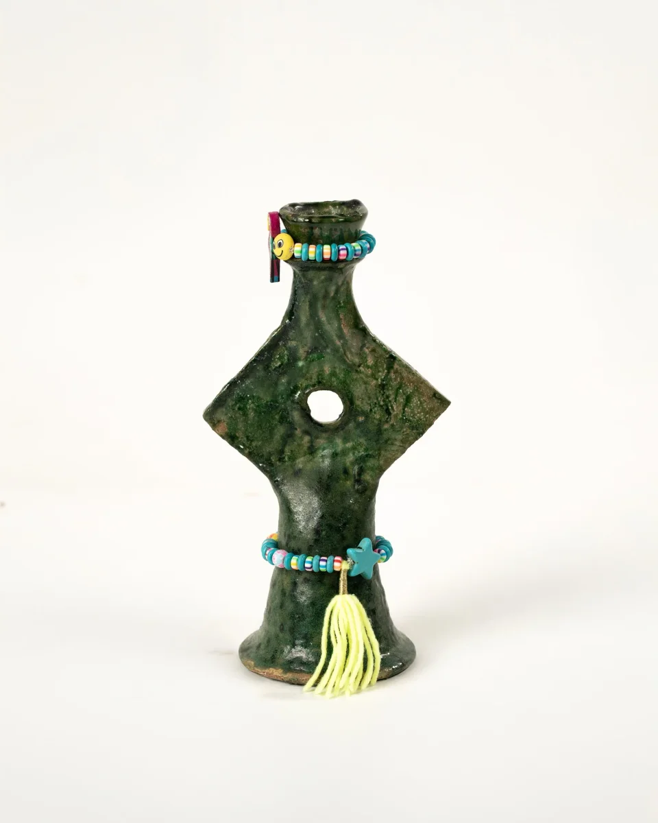 Bougeoir en Tamegroute – Pièce artisanale ornée de perles.