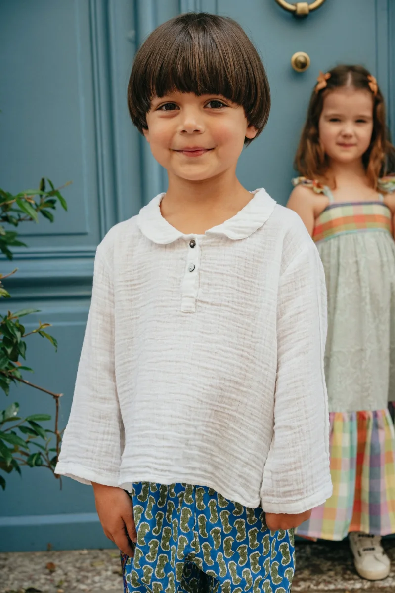 La chemise Eugène en 100% gaze de coton est le petit chemisier par excellence pour habiller votre bébé.