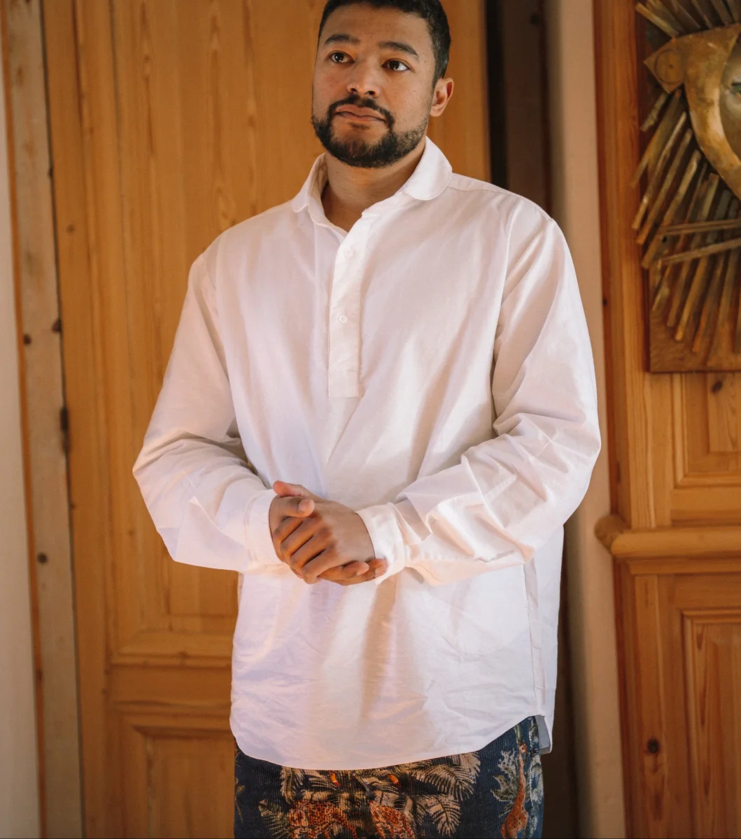 La tunique Oxford blanche « Pablo » incarne le parfait équilibre entre confort et raffinement pour l’homme moderne. Sa coupe tunique fluide et légère offre une silhouette soignée, tandis que le col de chemise arrondi et les trois boutons de fermeture apportent une touche de sophistication subtile. Ce modèle allie l’élégance d’une chemise classique à une touche contemporaine, idéale pour des looks à la fois décontractés et stylés.