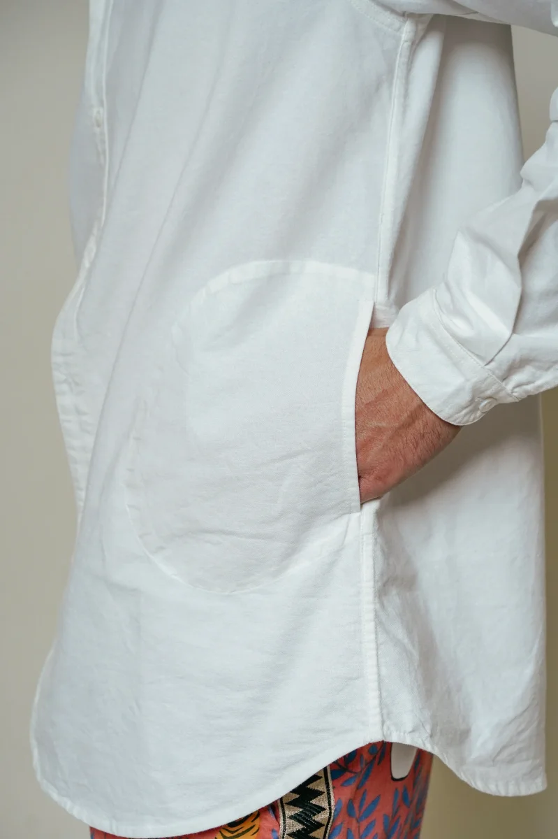 Deux poches viennent se glisser de part et d’autre de l’avant de la chemise.