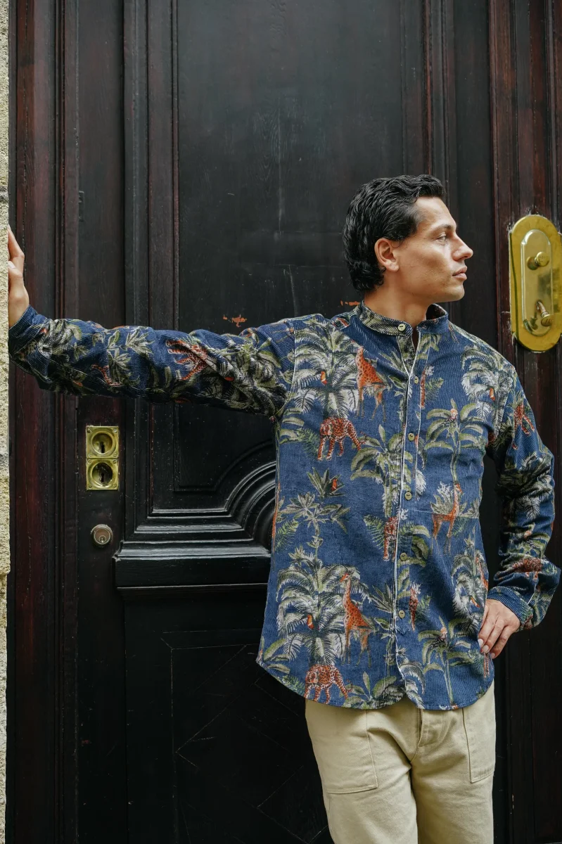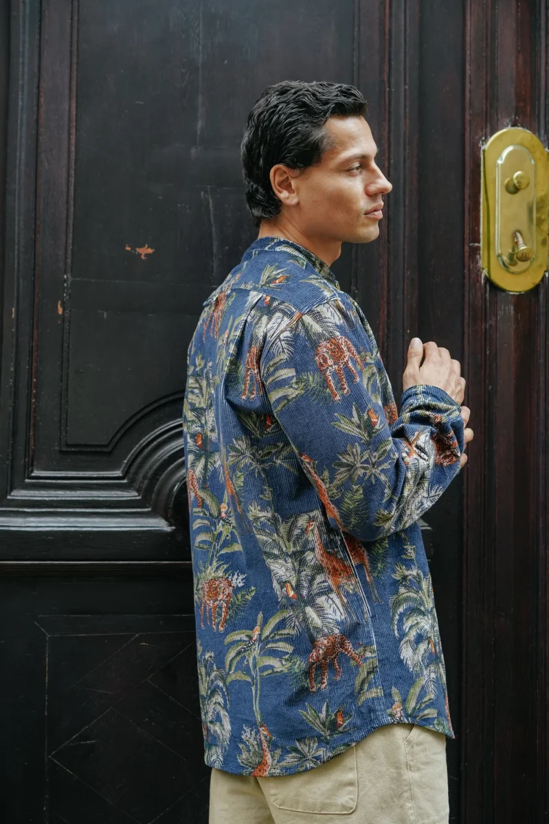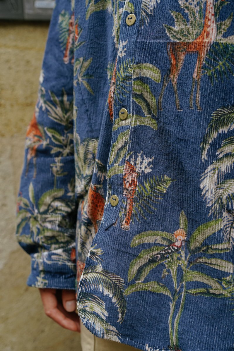 Le velours côtelé printé jungle apport tout son charme à la chemise.