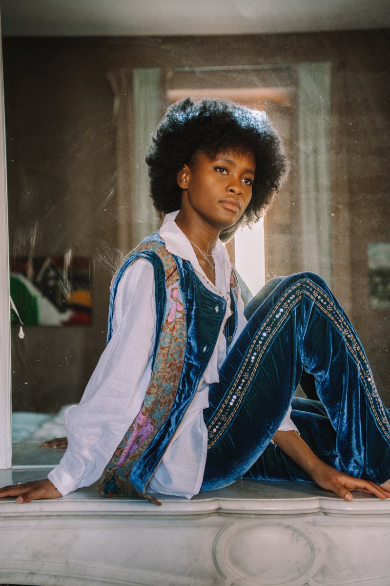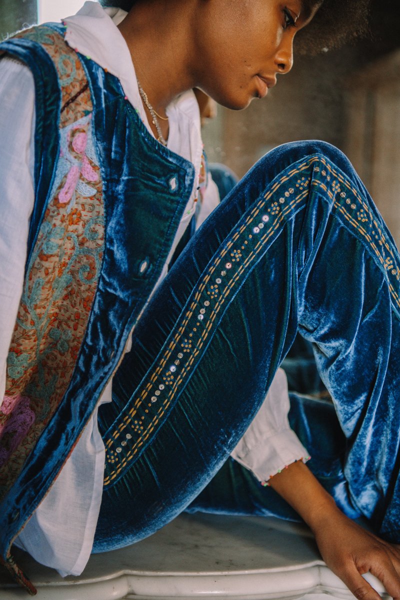 Notre must-have qui allie confort et style, notre pantalon Sayani en velours de soie.