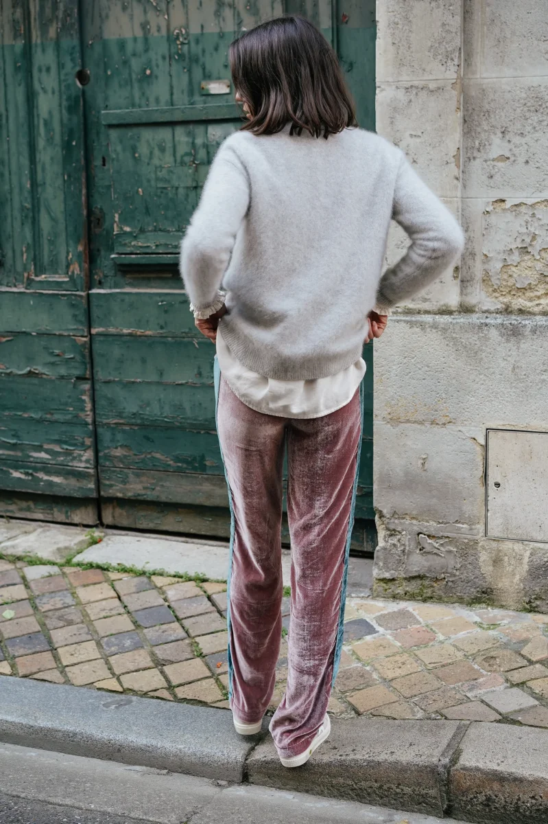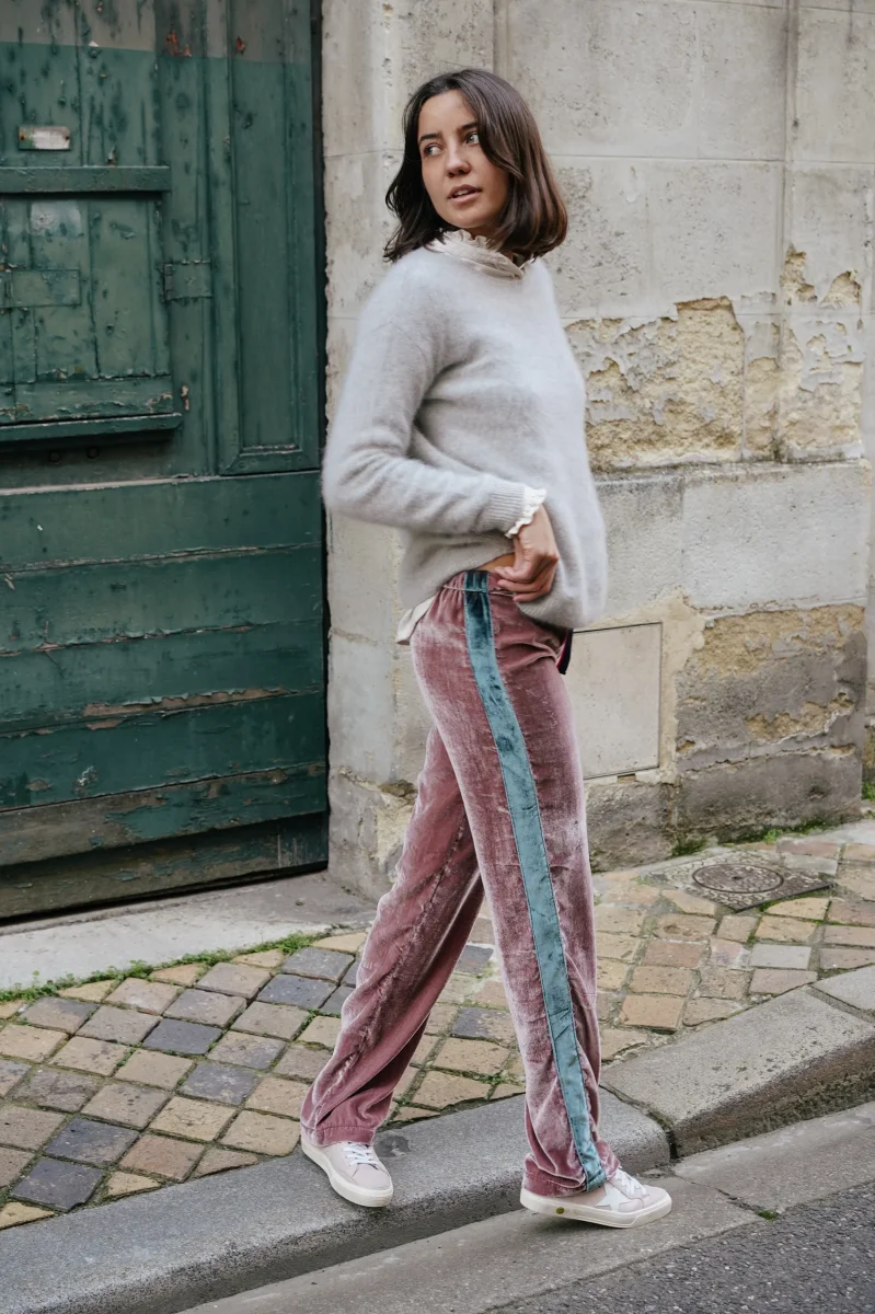 Notre must-have qui allie confort et style, notre pantalon Sayani en velours de soie.