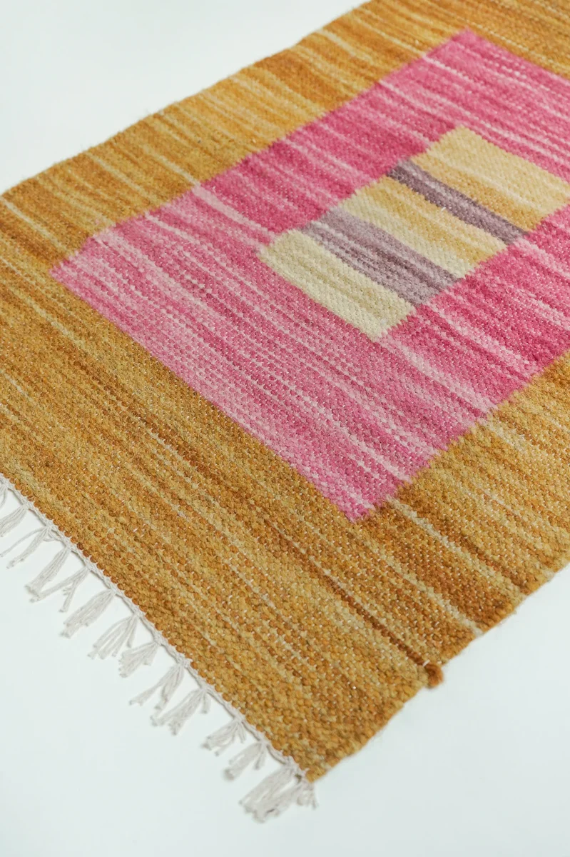 Ce tapis indien en laine, de dimensions 94 x 62 cm, est un choix parfait pour ajouter une touche de confort et d’élégance à votre intérieur. Tissé à la main avec soin, il présente des motifs traditionnels qui se marient harmonieusement avec divers styles de décoration.