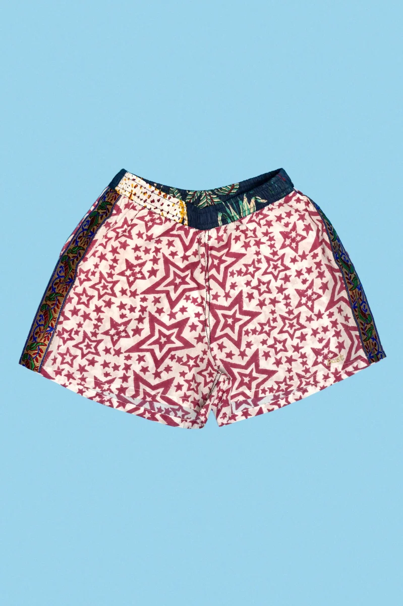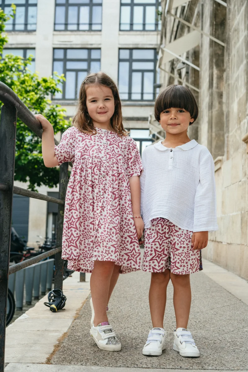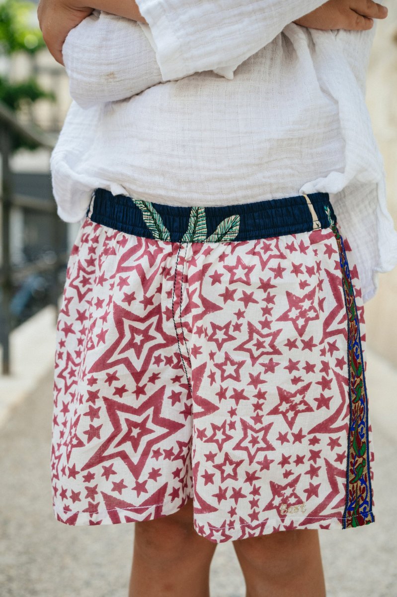 Ici, le short Agatha reprend le tissu du boubou Maxime.